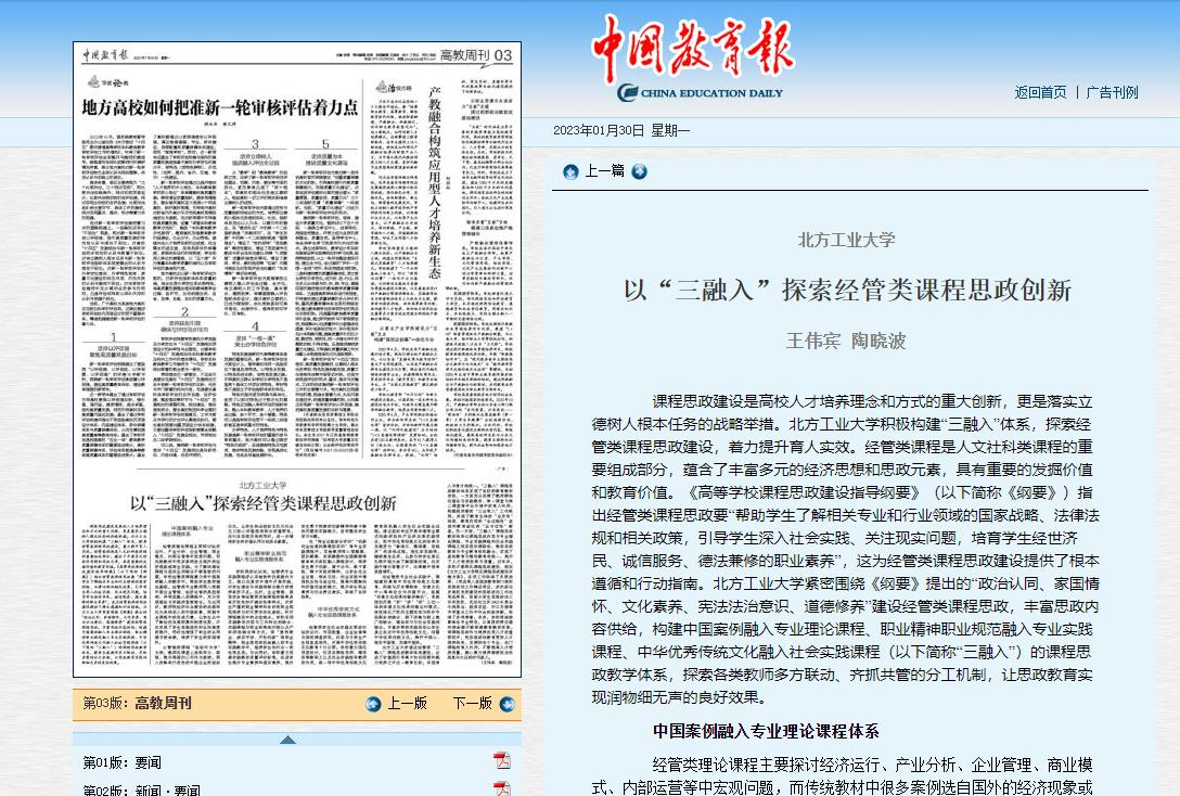 《中国教育报》刊载beat365官网经管类课