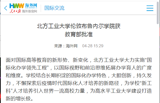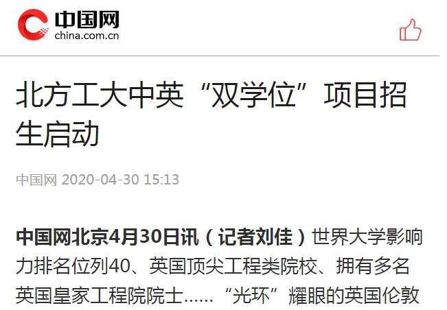 中国网:北方工大中英“双学位”