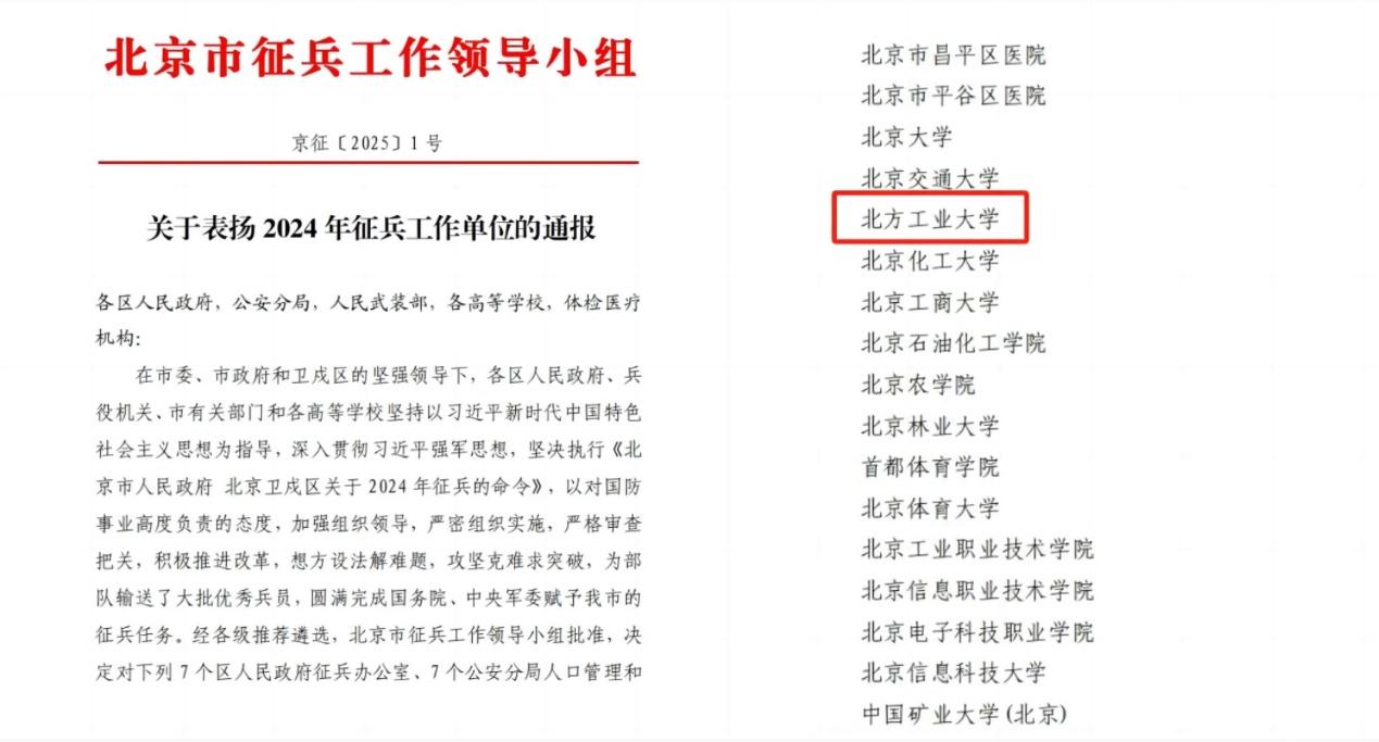 近日,北京市召开2025年征兵工作电视电话会,安排部署今年征兵工作,通报表彰北京征兵工作先进单位和先进个人。beat365官网获评2024年北京市征兵工作先进单位,这是学校连续第6年获此荣誉。