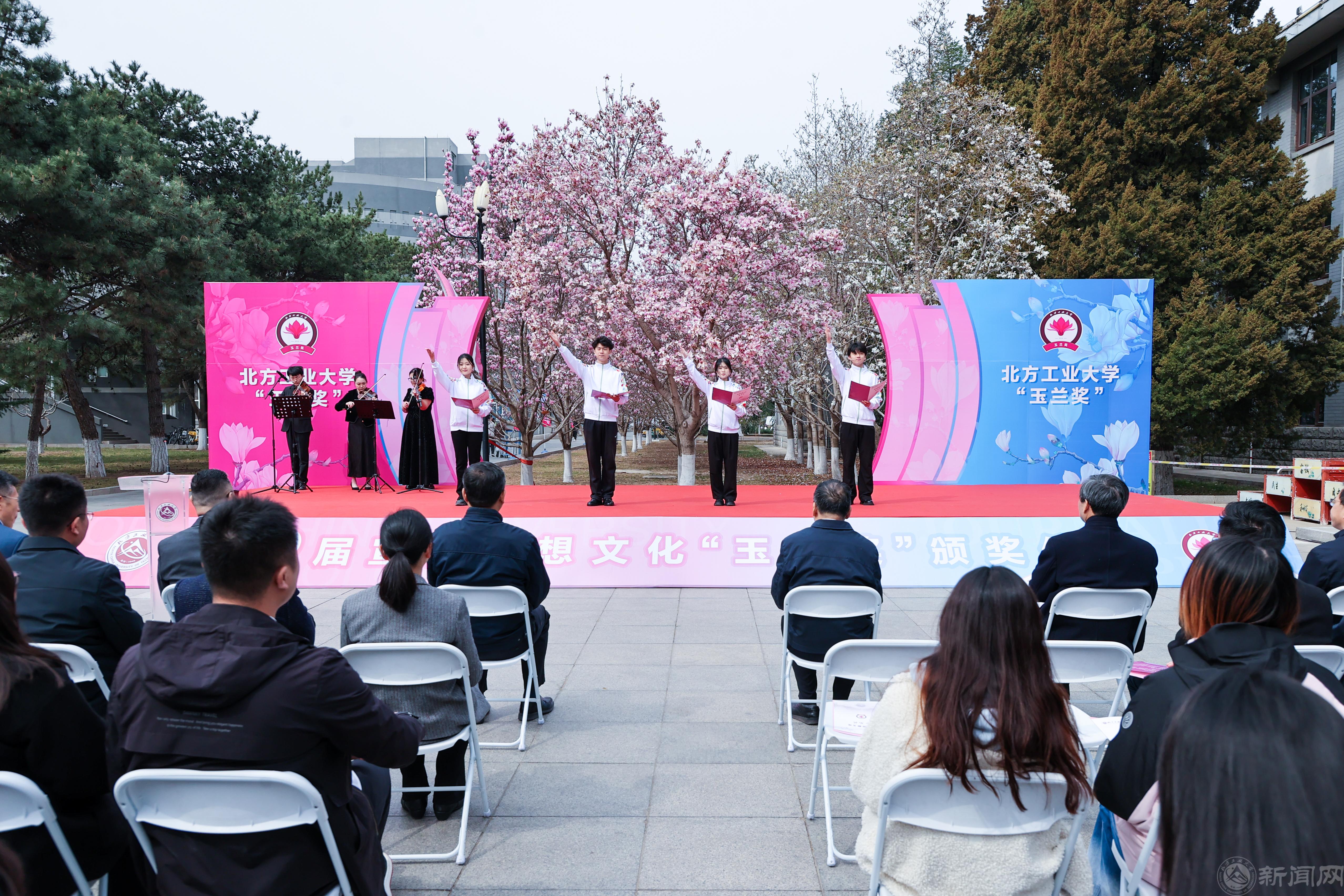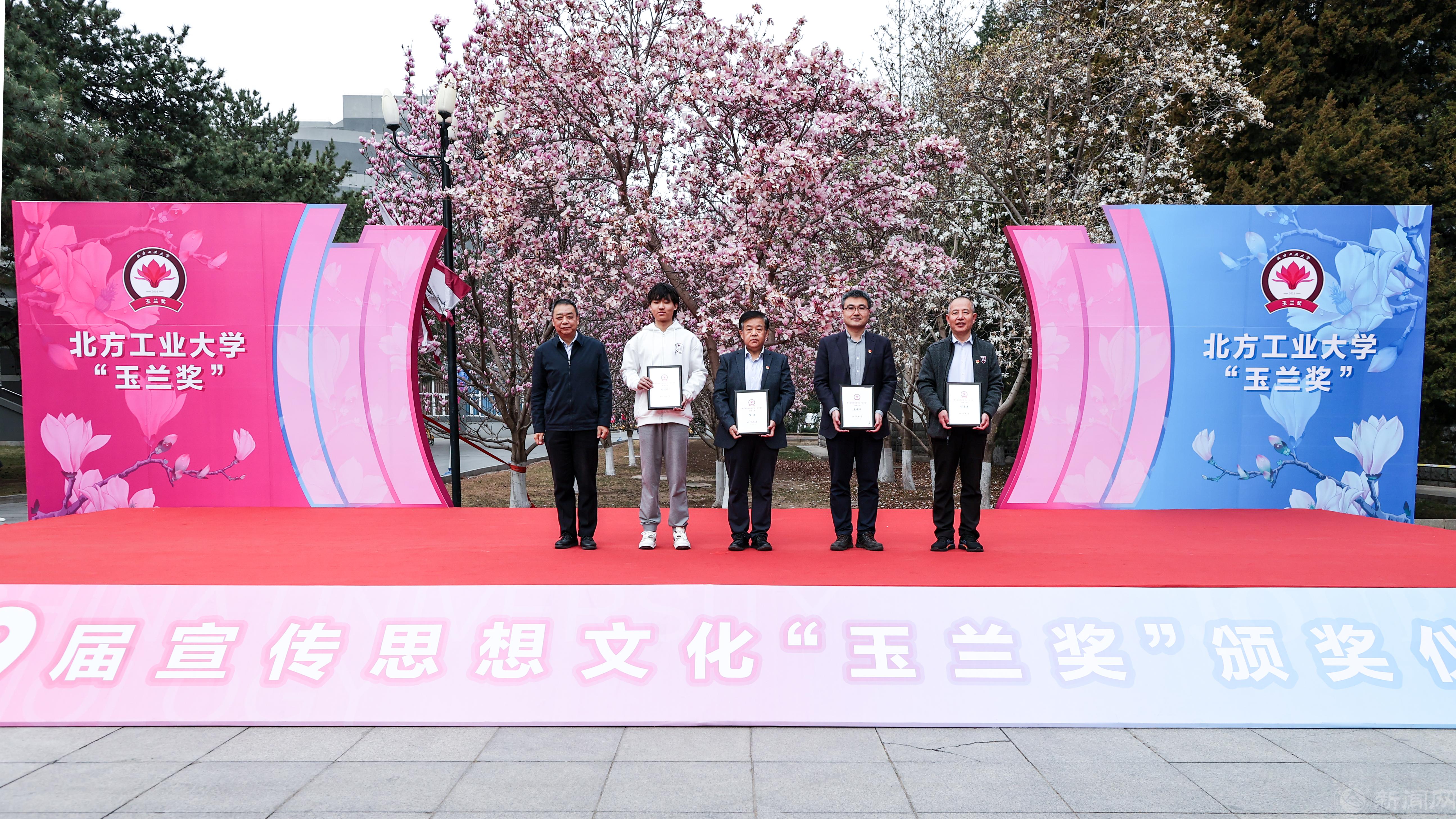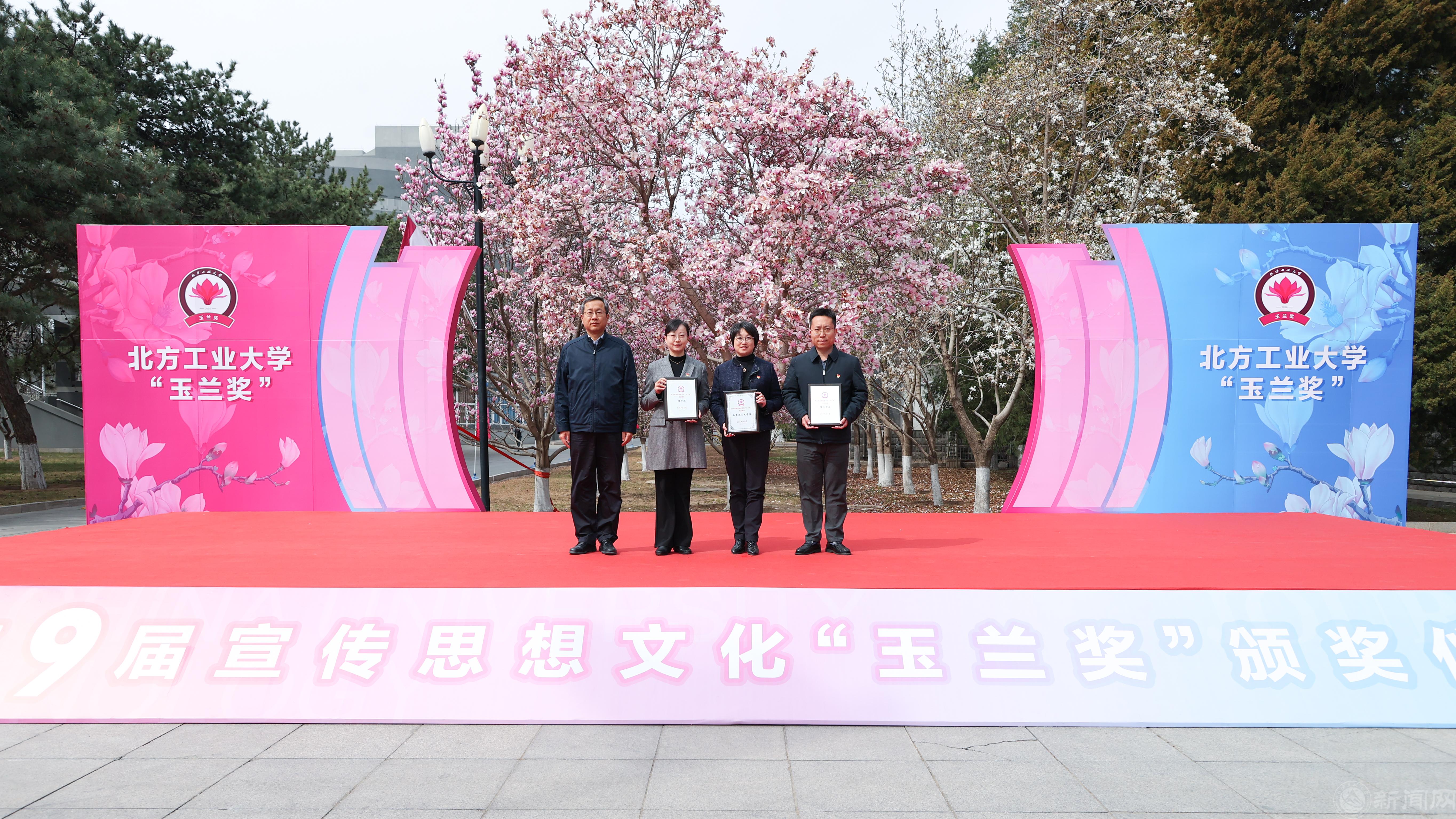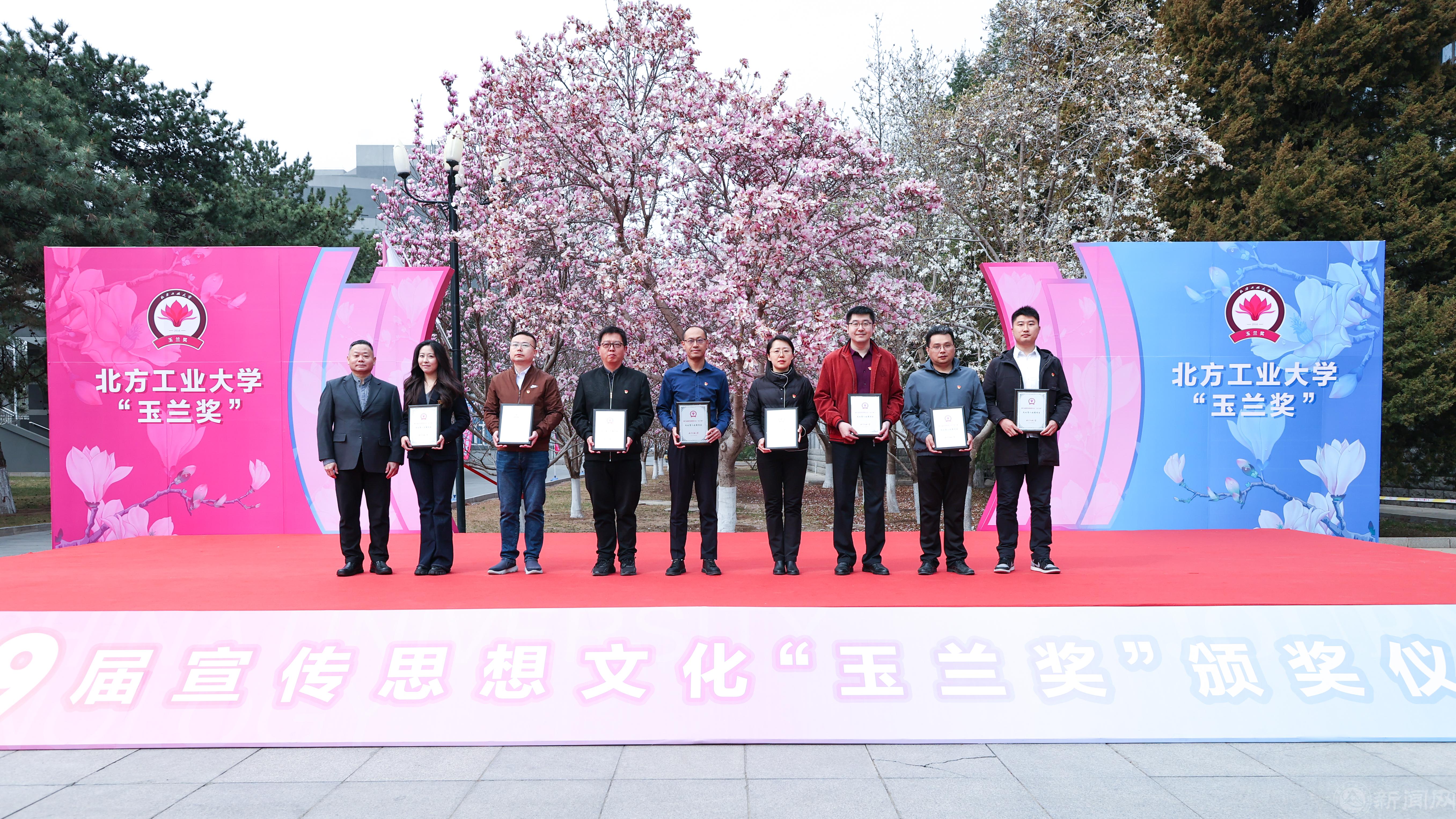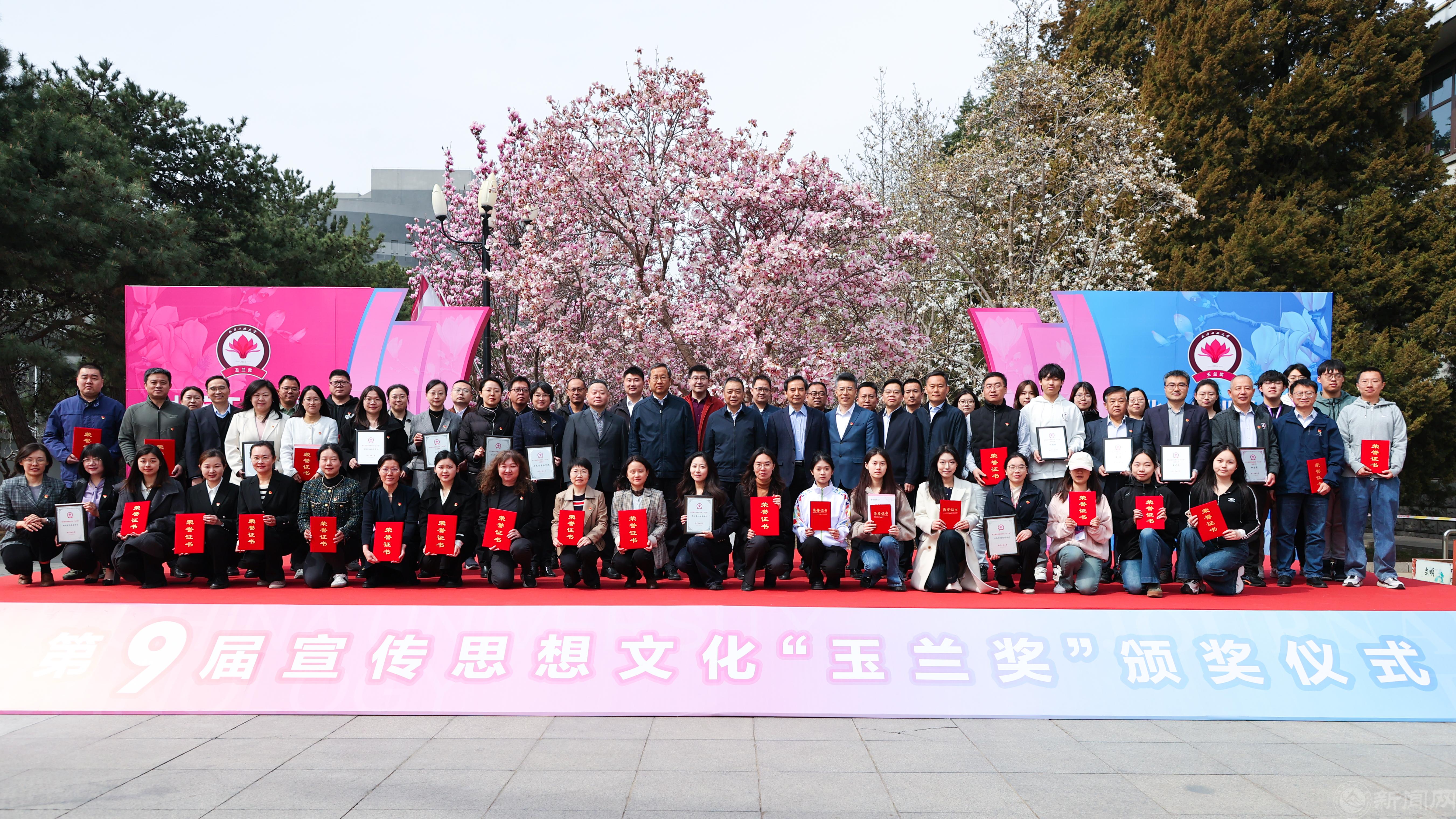 3月26日上午,beat365手机版官网第九届宣传思想文化“玉兰奖”颁奖仪式在敦品楼前隆重举行。师生齐聚玉兰树下,回顾发展成就,凝聚工大精神,奏响高水平工科大学建设关键之年的嘹亮序曲。全体在校校领导,职能部门负责人,二级学院党委书记、副书记,宣传员、通讯员、学生记者等150余人参加。颁奖仪式由党委副书记姜孔桥主持。