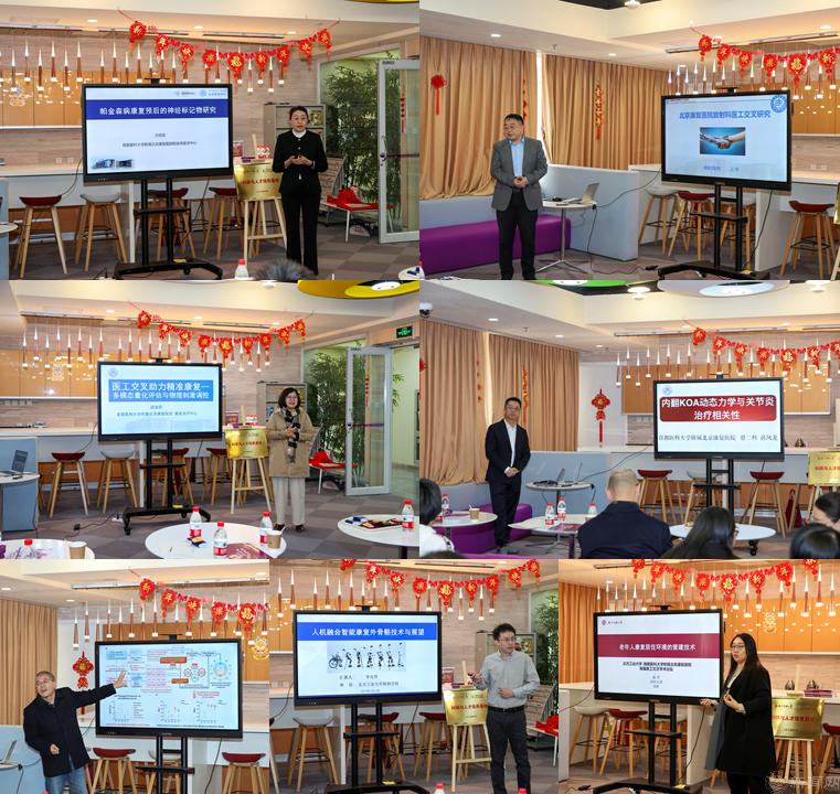 学术报告环节由建筑与艺术学院院长王新征教授主持。来自beat365官网与北京康复医院的七位专家学者通过主题报告呈现了医工交叉领域的最新研究成果。在智能康复技术方向,方伯言教授分享了帕金森病生物标记物研究进展,机材学院李克祥博士系统介绍了外骨骼机器人技术的研发成功;在精准医学研究方面,孙凤龙主任揭示了膝关节生物力学特征与关节炎发展的关联机制,郄淑燕主任展示了基于多模态数据的康复评估成果;信息学院王华锋教授团队则提出了人工智能在睡眠监测中的创新应用。此外,建艺学院温芳博士和王伟主任分别从康复环境设计与医学影像分析维度,探讨了工程技术创新在医疗场景中的实践路径。