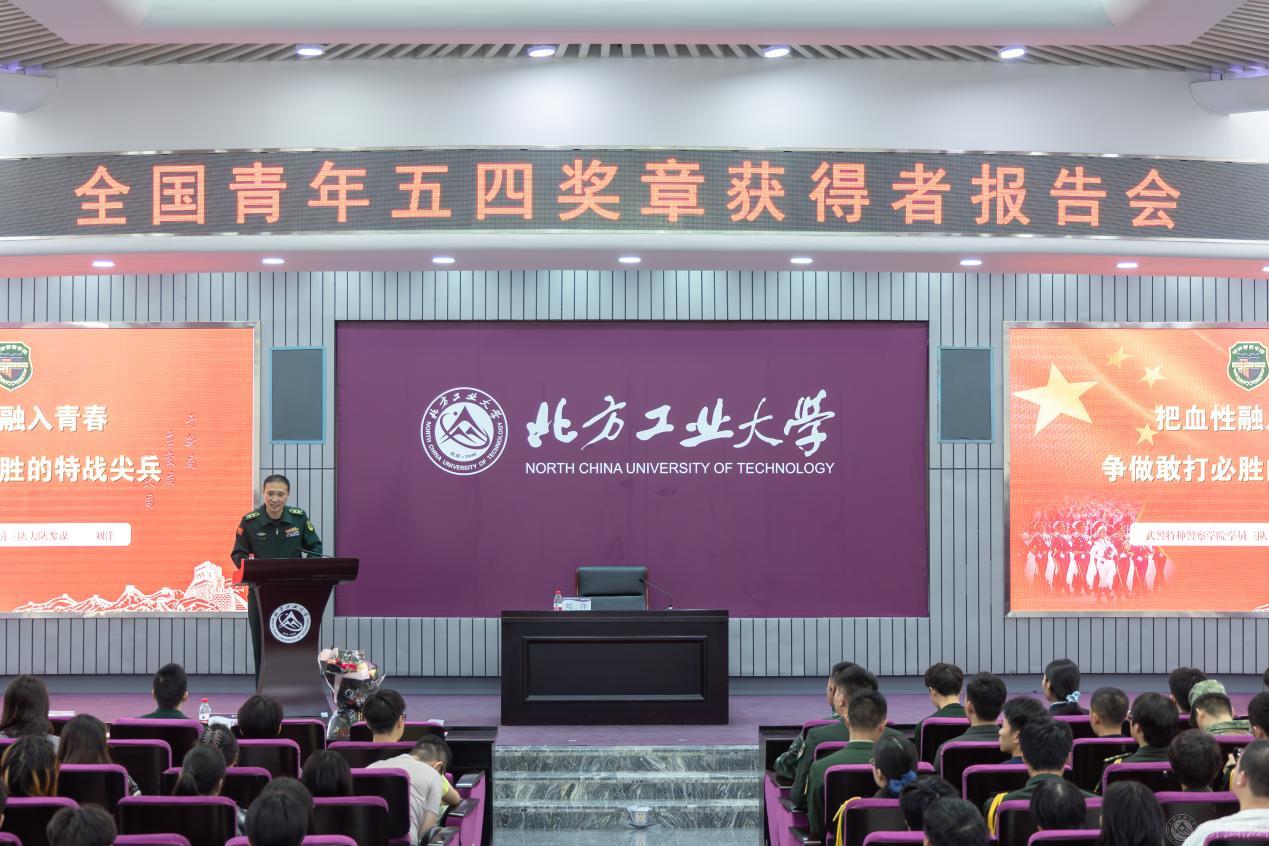 为深入学习宣传贯彻党的二十大和二十届二中、三中全会精神以及习近平总书记关于青年工作的重要思想,纪念五四运动106周年,团结凝聚全校团员青年在奋力谱写中国式现代化征程中挺膺担当,为学校特色鲜明、优势突出的高水平工科大学建设贡献青春力量,在五四青年节即将来临之际,学校邀请全国五四青年奖章获得者、武警特警学院副团职参谋刘洋以《把血性融入青春,争做敢打能胜的特战尖兵》为题来校做专场报告。武警特警学院教务处贺坤中校,学校学工部(研工部)、武装部、校团委负责人,退役大学生士兵代表、学校青马班学员、国旗班队员及新发展团员代表共300余名师生现场参加活动。
