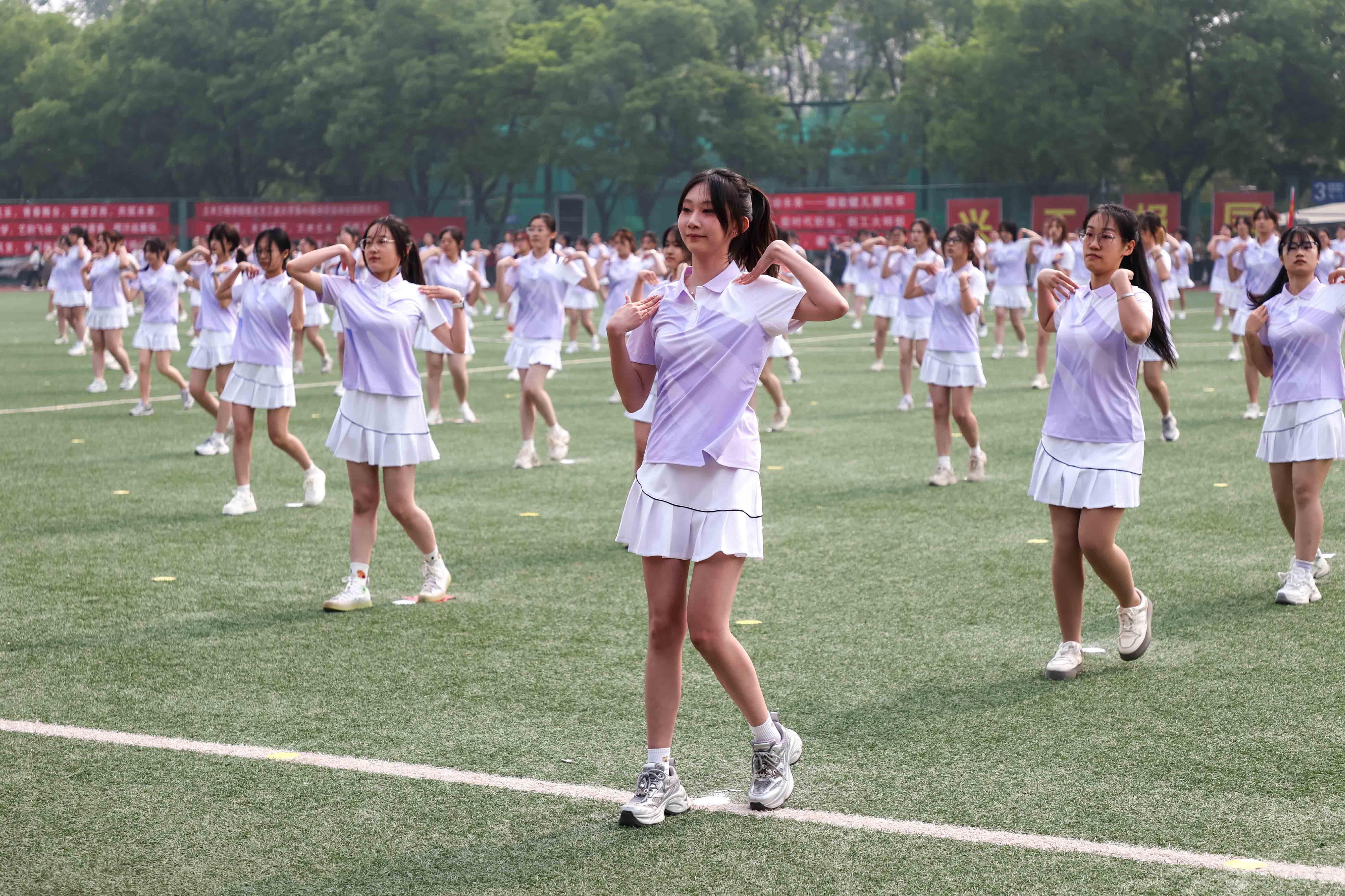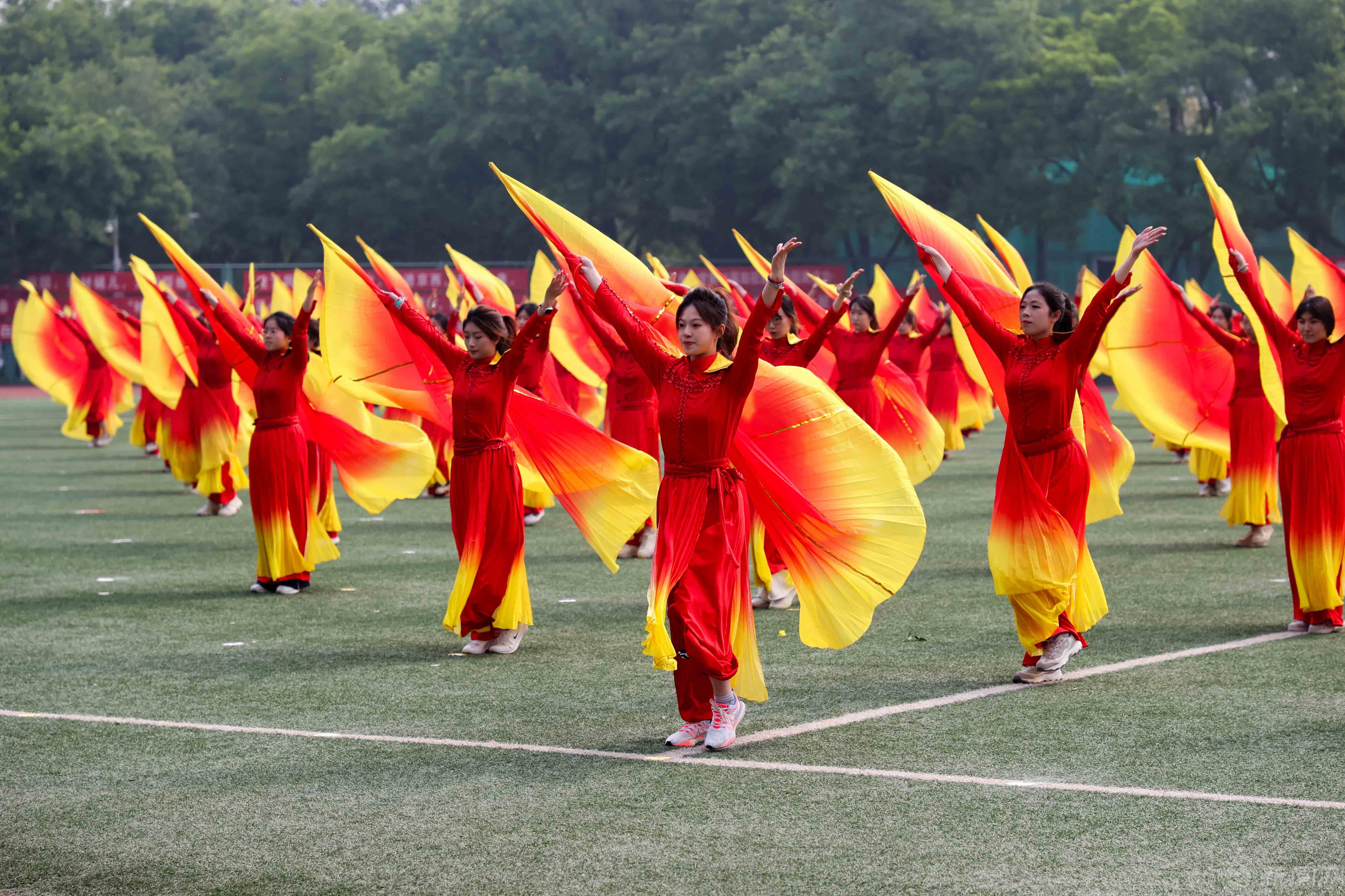 学生团体操轻灵跃动,朝气蓬勃,青春气息扑面而来