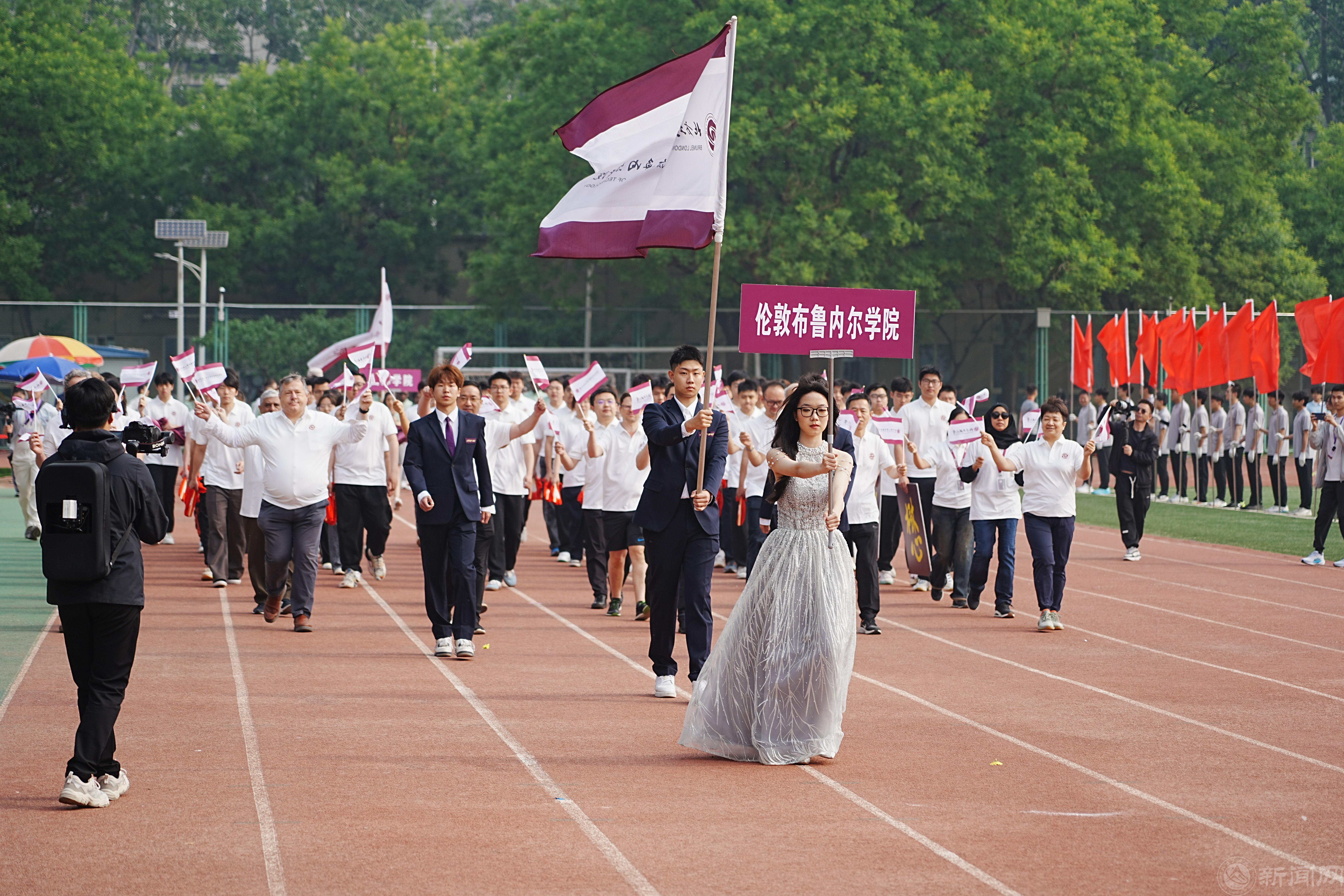 伦敦布鲁内尔学院方队展现中外合作办学风采,以在国内外体育赛事中的优异成绩展现运动健儿青春风采