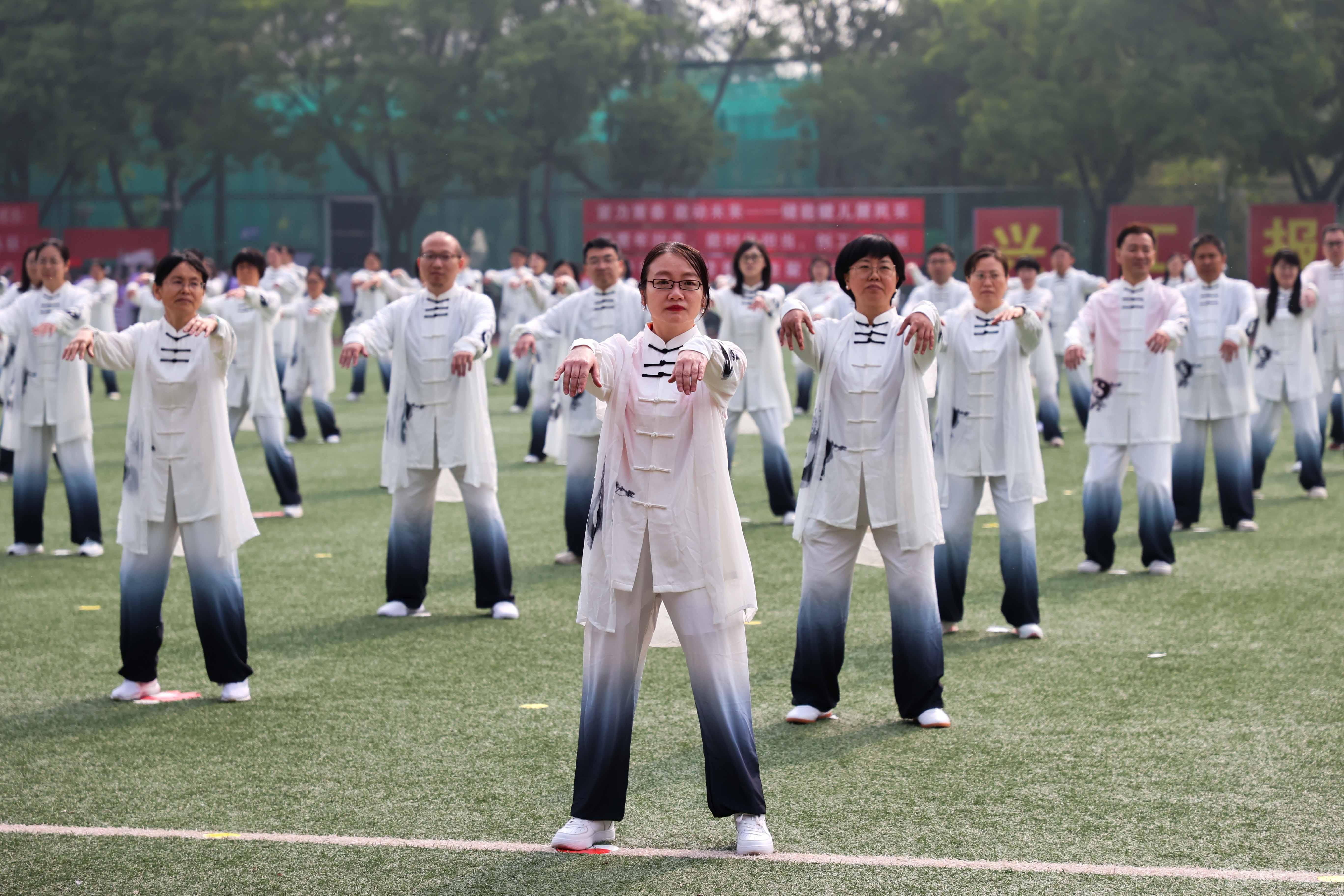 开幕式上,师生联袂进行了太极拳、龙舞、团体操和旗舞表演,献上一场高水平的视听盛宴。