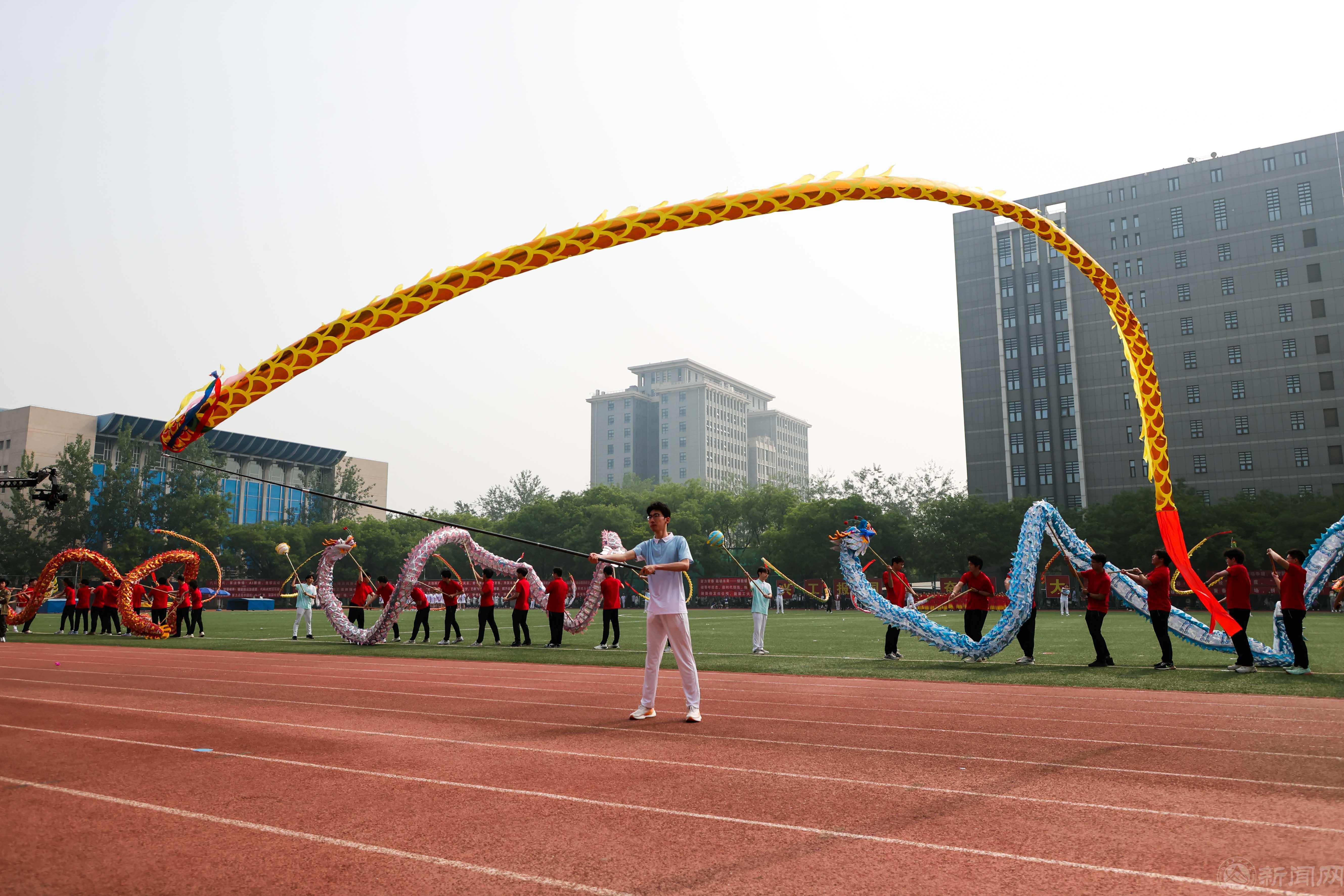 龙舞表演气势恢宏,刚劲有力,传递泱泱大国气派和师生投身强国建设的决心信心
