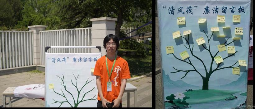 本次活动包含了“清正廉明”师生廉洁文化知识竞赛、“清风笺”廉洁留言和“清正廉明”廉洁印记收集活动三大板块。在知识竞赛环节中,主持人通过随机抽题进行提问,现场师生踊跃抢答,每答对一题可获印章一枚。竞答现场气氛热烈,参与者们积极思考、踊跃发言,广场上不时响起阵阵掌声。与此同时,师生们纷纷在“清风笺”上留下“廉洁做人做事”的相关座右铭或寄语,贴于“廉洁大树”上,让廉洁清风吹拂校园每个角落,滋养每个人的心灵。