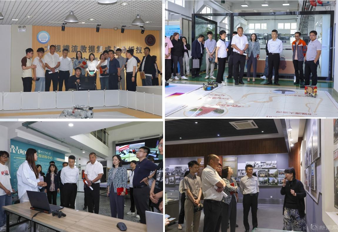 调研组首先参观了数字产业学院、智能交通创新实验室、车规级芯片封测校企合作创新创业就业示范基地、数据工程研究院、大规模流数据集成与分析技术北京市重点实验室、智能制造实验室、大学生科创大赛优秀作品展以及校史馆。