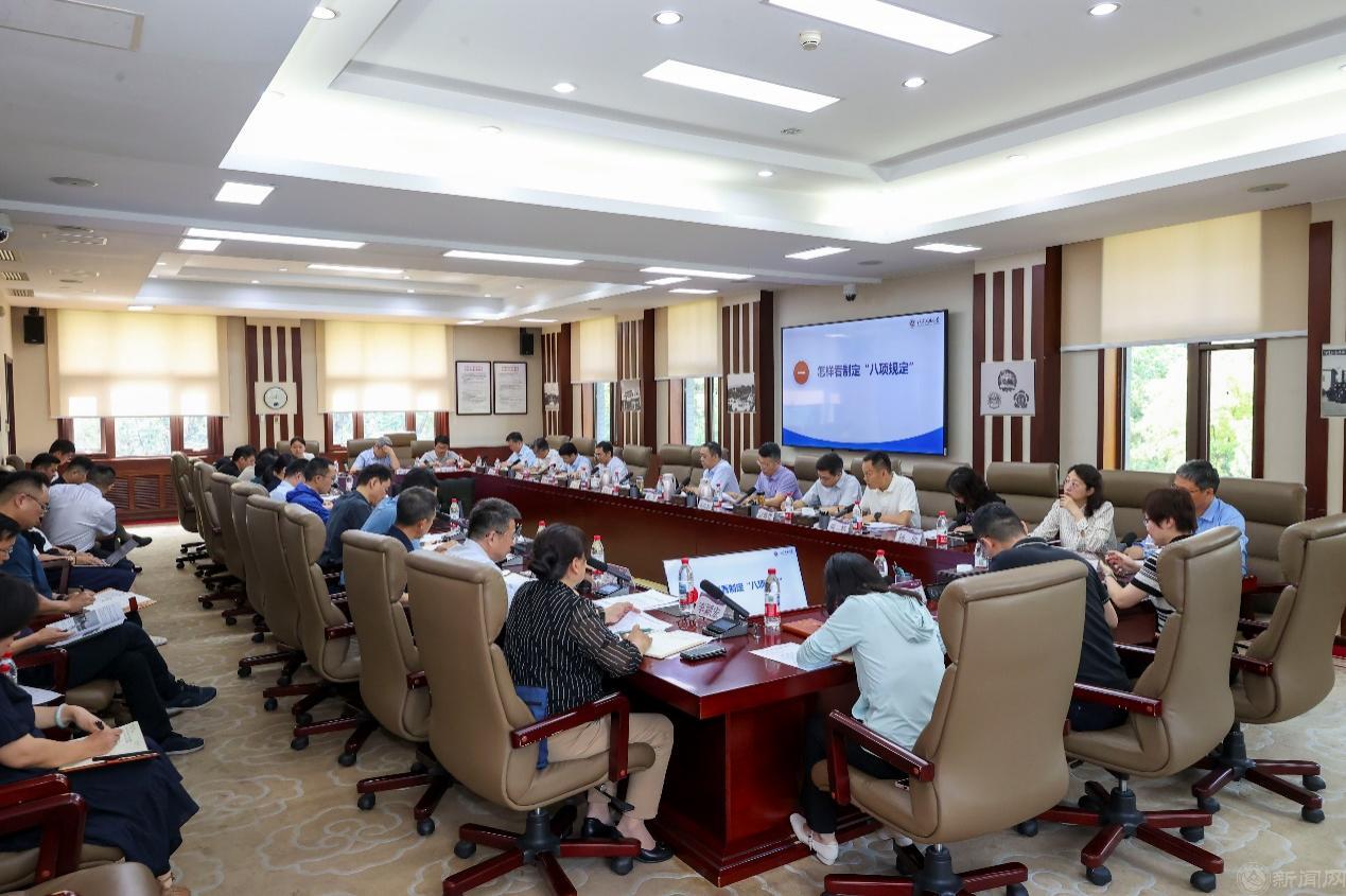 刘军指出,八项规定体现了党性这个作风建设的本质要求,抓住了党同人民群众关系这个作风建设的核心,贯彻落实中央八项规定精神,就是破除人民群众最痛恨、反映最强烈的歪风邪气,树立人民群众热切期盼、双手赞成的清风正气。他结合学校开展深入贯彻中央八项规定精神学习教育情况提出要求:一要以上率下、示范带动,发扬钉钉子精神,领导干部要坚持带头做、带头抓,坚定不移地将作风建设的各项要求落到实处。二要久久为功、建章立制,认真学习贯彻《党政机关厉行节约反对浪费条例》等制度文件,以梳理出的问题清单为靶向改进工作,以制度机制固化作风建设成果,推动作风建设常态化长效化。