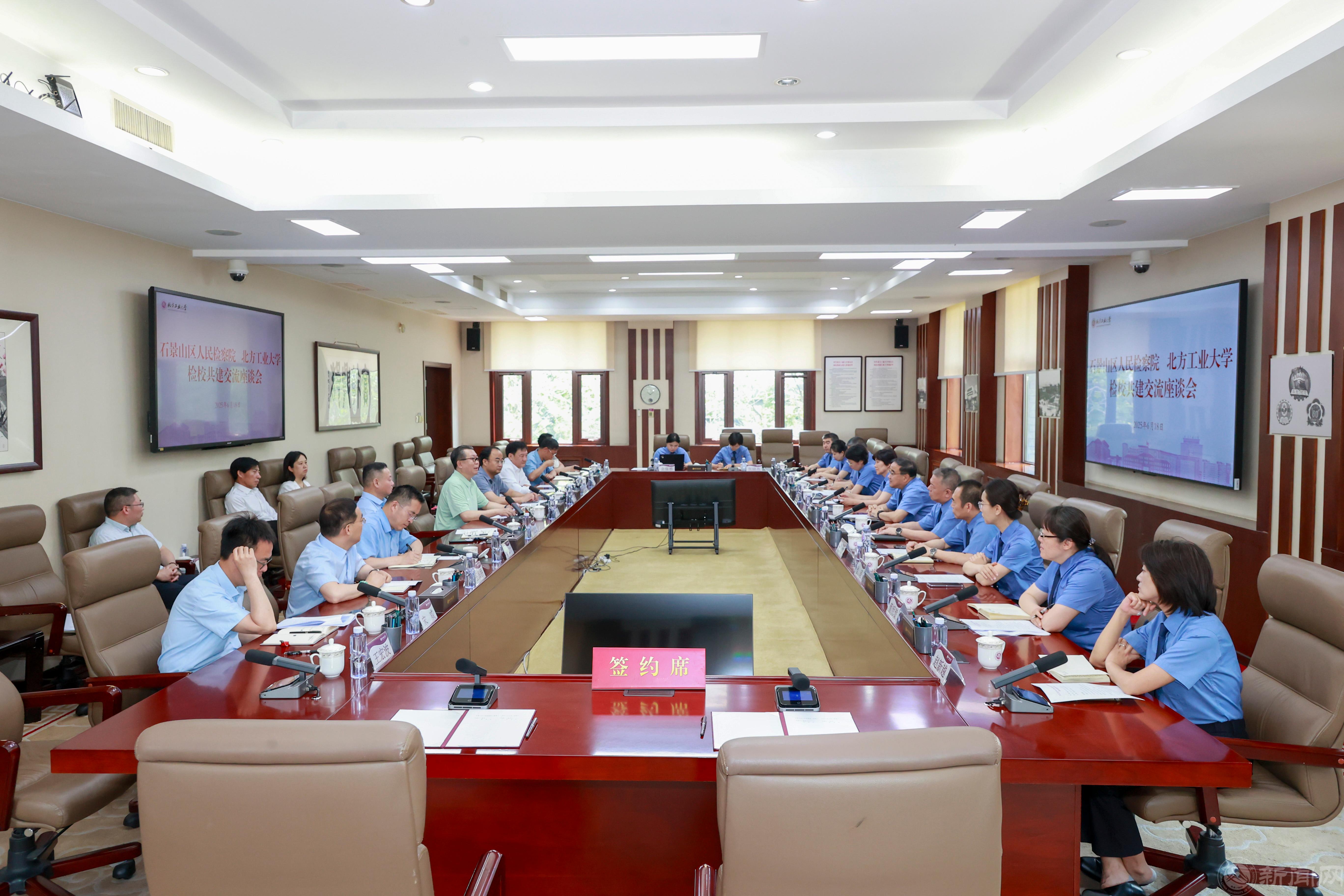 为深入贯彻落实中共中央办公厅、国务院办公厅《关于加强新时代法学教育和法学理论研究的意见》,落实最高检、教育部《关于加强新时代检察机关与高等学校合作的意见》,深化校检合作,优势互补,实现互利共赢。6月18日,石景山区人民检察院党组书记、检察长张京文,检察院党组成员及相关职能部门负责同志一行来校调研交流,beat365官网党委副书记、校长张立峰,副校长卢晓斌接待来访客人,党委常委、副校长王力主持会议。