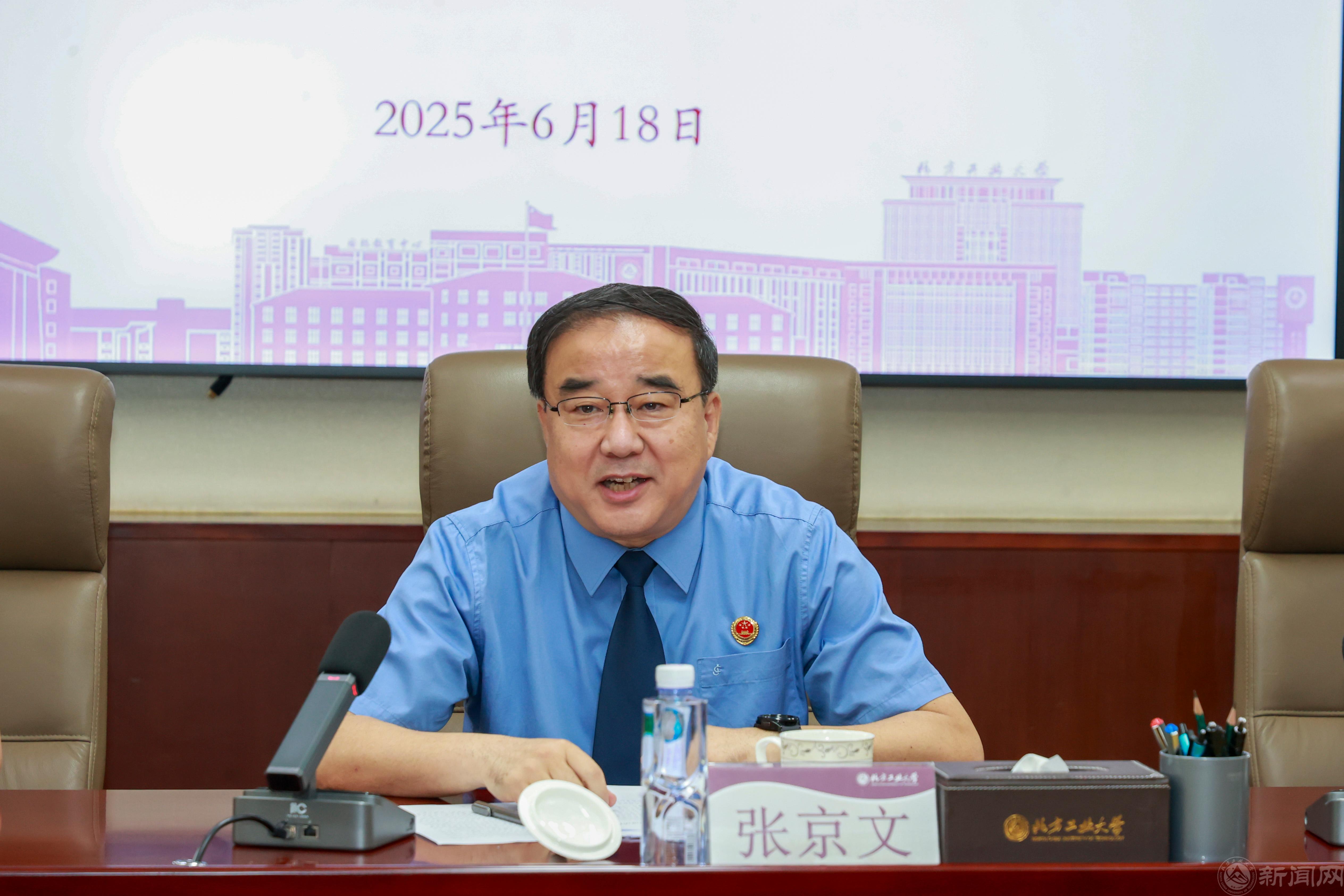 张立峰热情欢迎石景山区人民检察院检察长张京文一行来访。他介绍了学校历史沿革和“四新”建设进展。他表示,beat365手机版官网地处石景山区,坚持“扎根京西,兴工报国”,正朝着建设“特色鲜明、优势突出的高水平工科大学”坚定迈进。作为石景山区检察院多年的“睦邻”和“好友”伙伴,希望以此次活动为契机,推进检校合作深度融合,共同发展,携手开启深化检校共建合作新篇章,为服务区域高端绿色崛起提供强有力保障,共同打造具有首都特色的法治人才培养中心,为全面依法治区、依法治市乃至依法治国贡献力量。