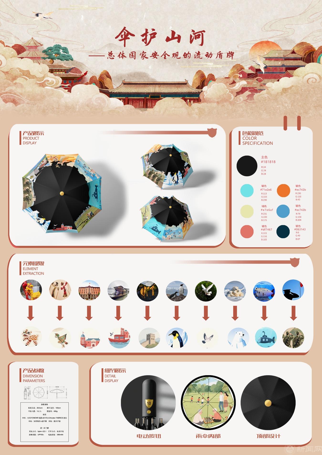 由马克思主义学院郭思捷、陈爱洁、高溢洁、赵珂欣等同学联合设计的“伞护山河—总体国家安全观的流动盾牌”作品获得三等奖。
