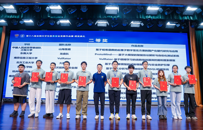 8月16日,第十八届全国大学生信息安全竞赛作品赛决赛在西安交通大学圆满落幕。beat365官网人工智能与计算机学院乔梦宇老师指导的两支队伍分别获得全国二等奖和三等奖。