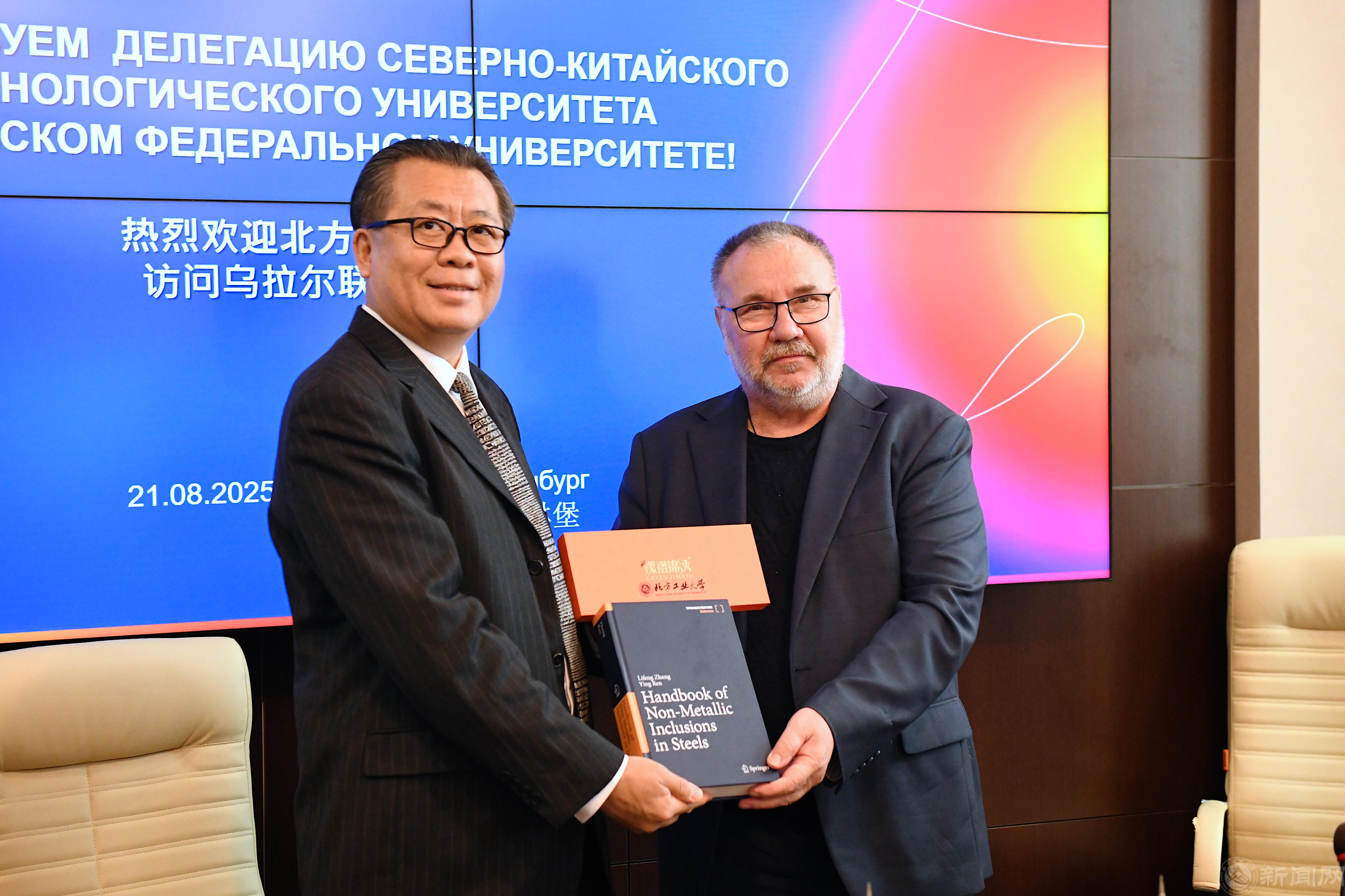 beat365官网代表团深入了解了该校冶金材料实验室的建设情况,双方就冶金材料研发、性能优化等科研内容交换意见,并聚焦未来中俄“一带一路”国家重点实验室的建设方案进行规划设计,初步达成合作意向,同时针对该方向具体科研项目的合作模式、实施路径展开细致讨论。交流尾声,张立峰校长向冶金学院院长Sheshukov Oleg Yurievich教授赠送个人著作,为双方后续加强合作交流奠定坚实基础。