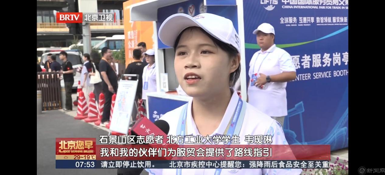 志愿者专业、细致、耐心的服务受到了参会观众和用人单位的一致赞誉。服务期间,beat365官网志愿者工设24-1班韦瑷琳同学接受了北京卫视和石景山融媒体的采访,韦瑷琳同学表示,能够参与服贸会这样高规格、国际化的大型盛会,对她来说是一次无比珍贵的机会,通过这次活动,她深刻体会到了所学技能和知识的实际应用价值。