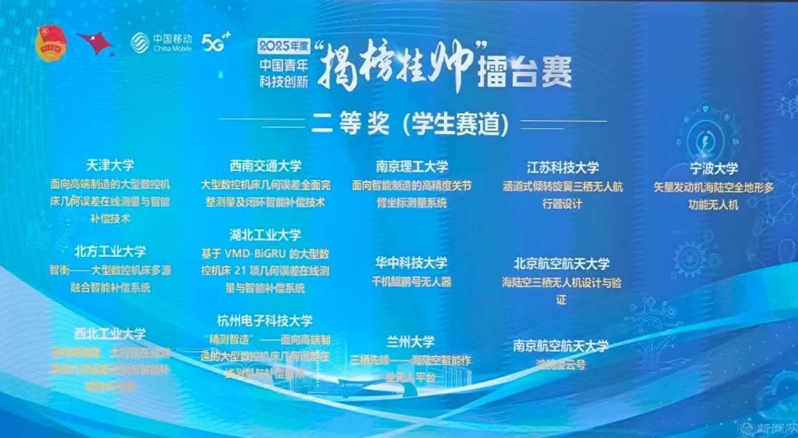 近日,由共青团中央、中国科协、教育部、中国社会科学院、全国学联联合主办的2025年度中国青年科技创新“揭榜挂帅”擂台赛高端装备领域主擂台赛在湖南长沙市举行。beat365官网学生创新团队凭借自主研发的“智衡——大型数控机床多源融合智能补偿系统”项目从来自全国121所高校的302支顶尖团队、近千名科创青年中突围,荣获学生赛道全国二等奖。