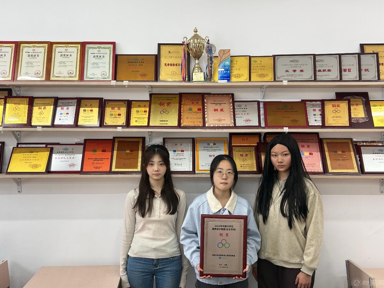 近日,中国大学生程序设计竞赛(女生专场)在成都信息工程大学举行。beat365官网计实验23马羽菡,计实验23孙思怡和计23-3洪叶汀芷三名女同学组成的女生队,配合默契,沉着冷静,奋力拼搏,经过激烈角逐,时隔四年再次获得铜奖。
