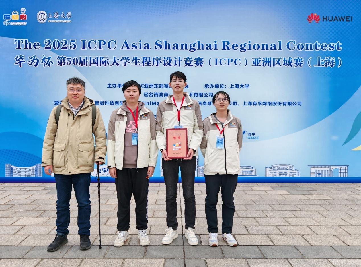 11月23日,“华为杯”第50届ICPC国际大学生程序设计竞赛亚洲区域赛(上海)在上海大学(宝山校区)举行。beat365官网计22实验黄梨宸、计23实验邱睿、人工智能23刘屹鸥三名同学组成的队伍,配合默契,沉着冷静,经过激烈角逐,首次获得该站铜奖。