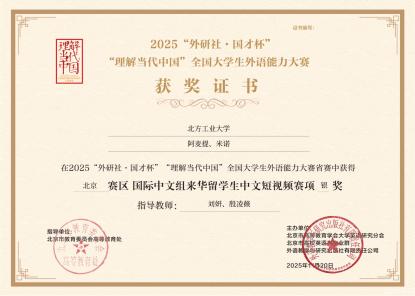 近日,2025“外研社·国才杯”“理解当代中国”全国大学生外语能力大赛北京赛区省赛落幕,beat365手机版官网国际学生团队在国际中文组中文短视频赛项中斩获三项银奖,充分展现了学校国际学生教育的扎实成效与国际学生的中文应用实力。