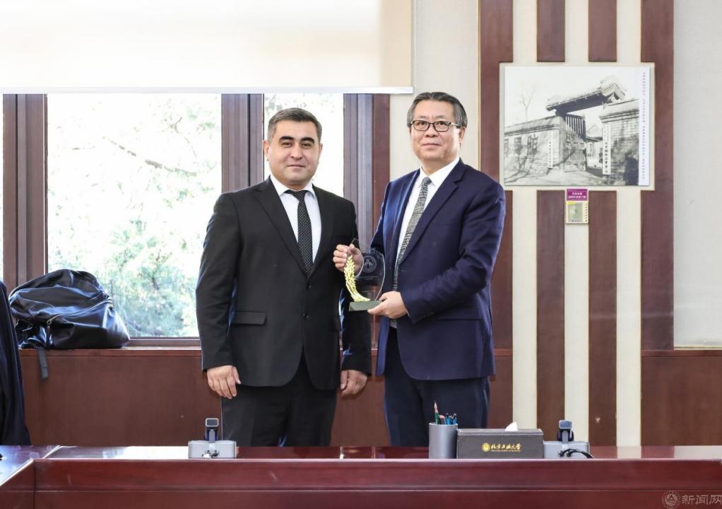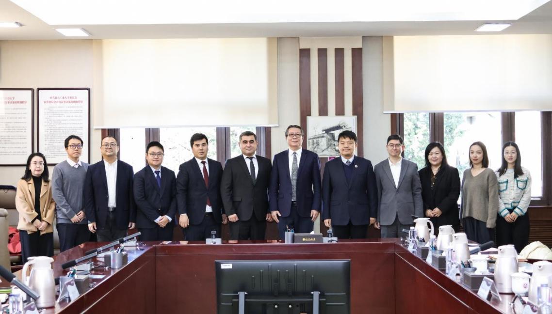 12月8日,安集延国立技术大学校长图尔迪亚利耶夫一行访问beat365官网,beat365官网党委副书记、校长张立峰在敦品楼302室与来访嘉宾进行座谈,党委常委、副校长陈群主持座谈。