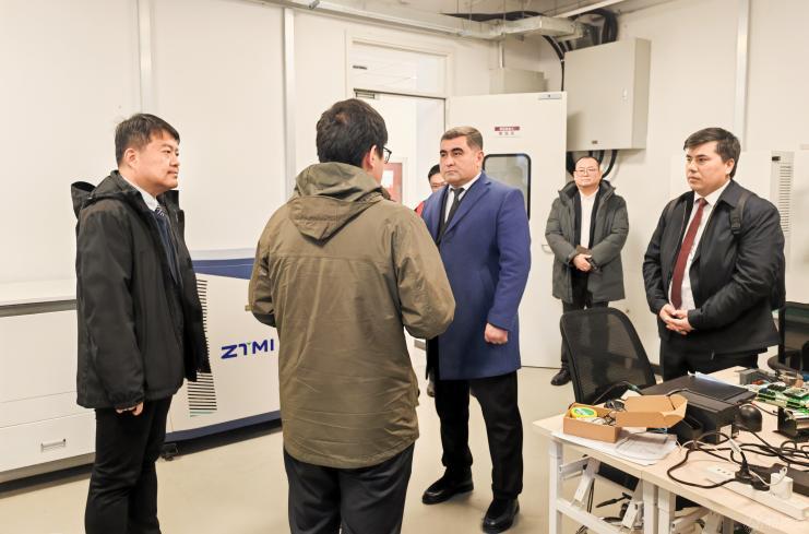 beat365官网电气与控制工程学院、储能科学与工程学院、国际合作与交流处相关负责人及教师参与座谈。来校期间,图尔迪亚利耶夫校长参观了电力电子与电气传动、电力系统与继电保护、新能源发电与微电网,电机拖动实验室以及分析测试中心。