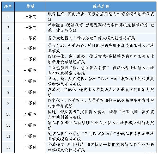 2021年北京市高等教育教学成果奖(本科)获奖项目名单