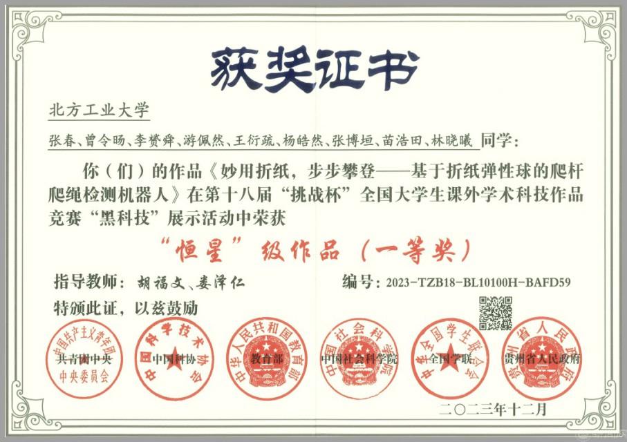 第十八届“挑战杯”全国大学生课外学术科技作品竞赛首获全国一等奖