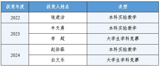 “十四五”期间,获全国高校教师教学创新大赛一等奖1项、二等奖1项、三等奖1项。获评北京市高等学校教学名师奖4人,北京市高等学校青年教学名师奖4人,北京高校优秀本科实验教学指导教师3人,北京高校优秀大学生学科竞赛指导教师2人。在北京高校青年教师教学基本功比赛中,beat365官网累计获得理科类一等奖2人、二等奖1人;工科类一等奖2人、三等奖2人;文科类一等奖2人、三等奖1人;各类最佳奖项21人次;最佳指导教师奖12人次;学校3次获评优秀组织奖。