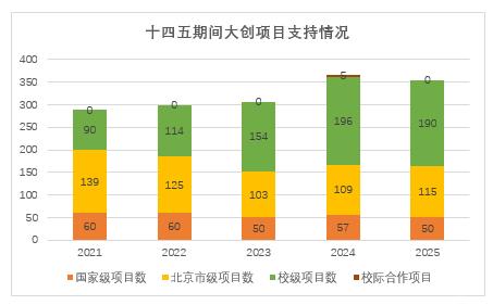 “十四五”期间,学校共资助大创项目1617项,总金额1285.5万元。