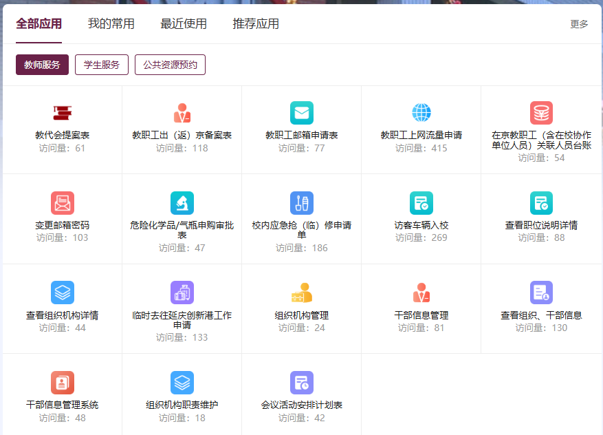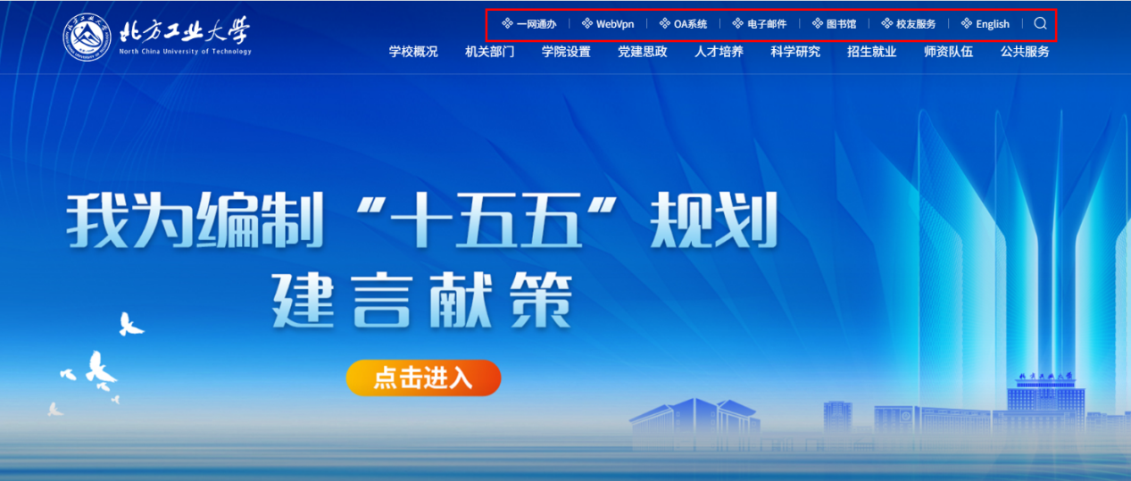 1.网站顶部增加服务功能快捷按钮,快速定位“一网通办”“webvpn”“电子邮件”等常用功能。