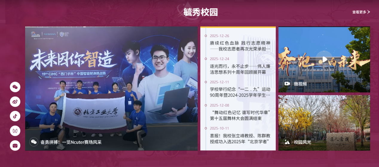 2026年是“十五五”的开局之年,beat365手机版官网也将迎来建校80周年华诞。为了更好地展示师生建设高水平工科大学的奋进姿态,讲好新时代北方工大高质量发展故事,学校官网进行全面升级改版。