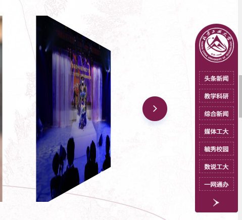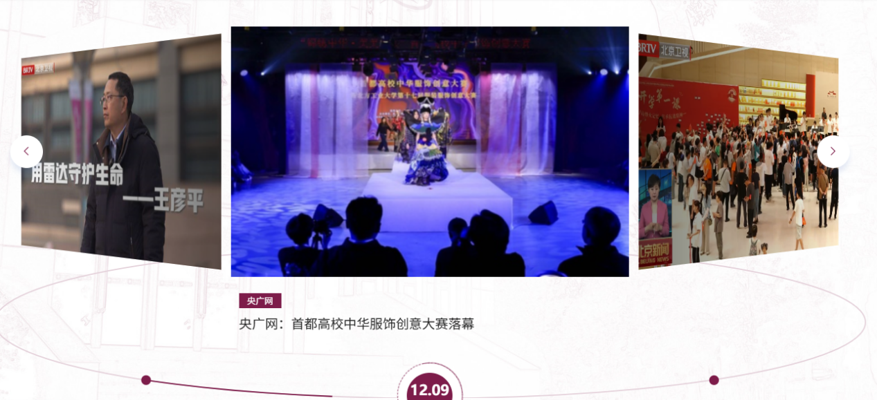 “媒体工大”栏目以时间轴为核心视觉元素,采用左右轮播形式,视觉上以旋转的方式展示。