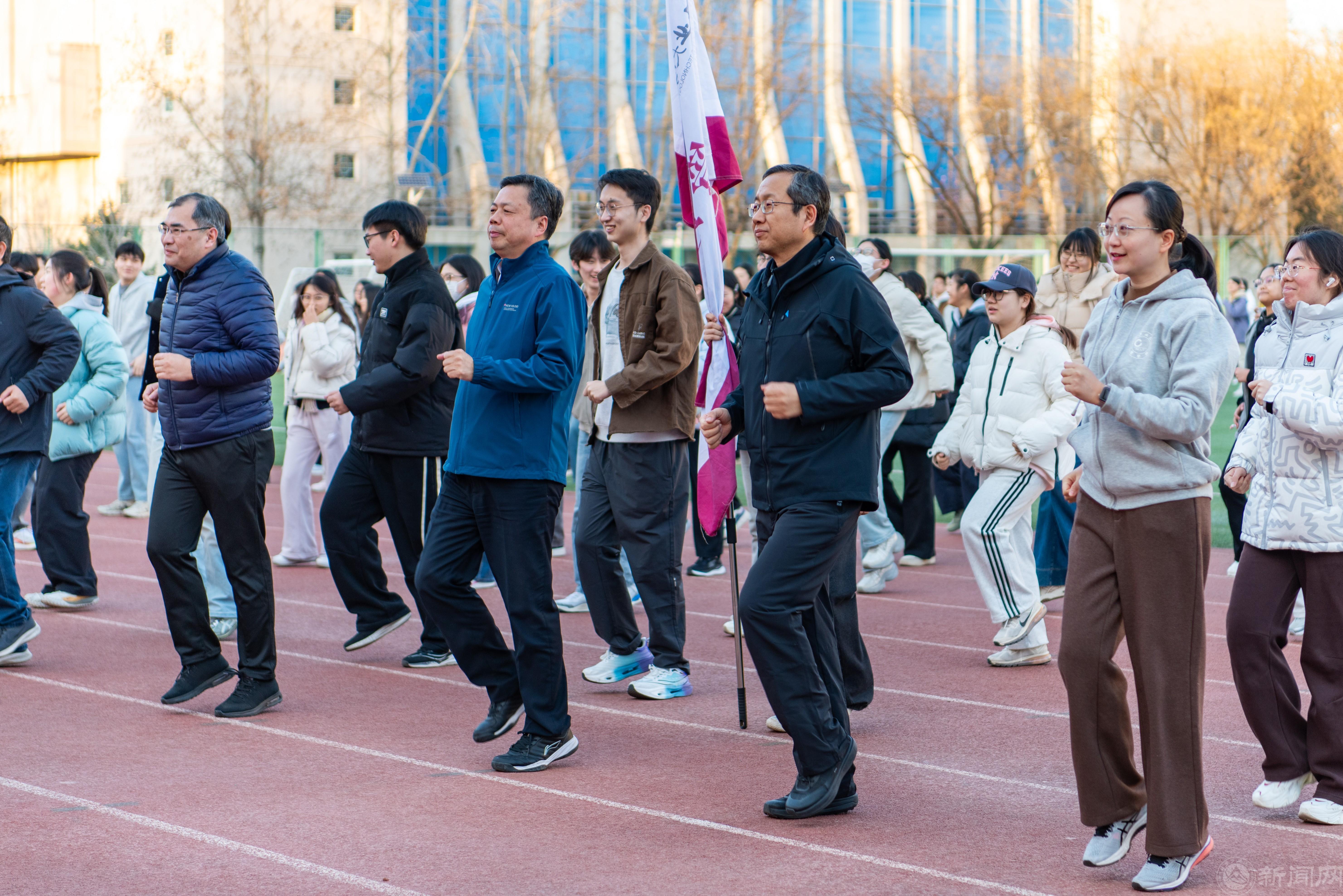 开幕式进入健康跑环节,在体育系教师带领下,全体师生共同热身;随着发令枪响,现场师生环绕西田径场共同开跑,用行动诠释健康理念,为本次体育节拉开序幕,将现场氛围推向高潮。