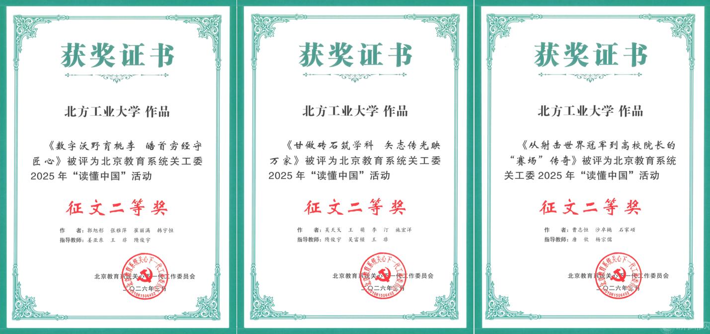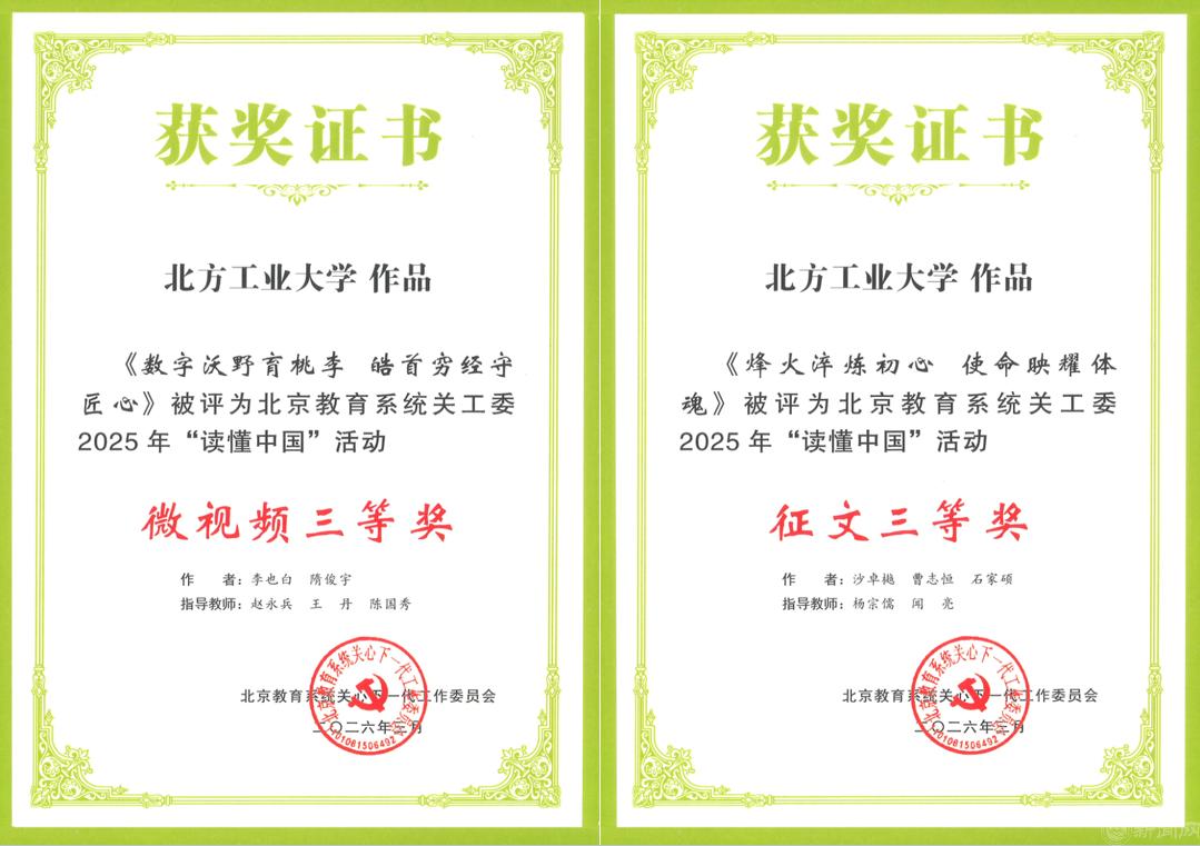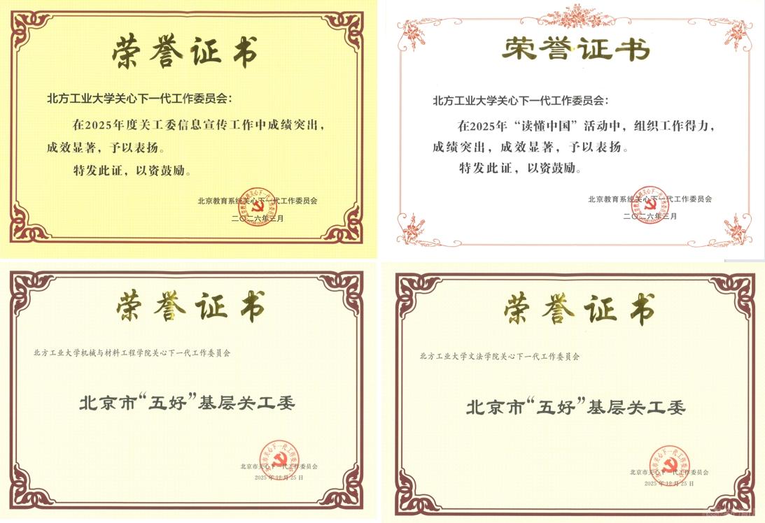 beat365官网关工委开展的2025年“读懂中国”活动、信息宣传工作以及军训服装捐赠工作均受到北京教育系统关工委表扬。“读懂中国”活动征文荣获北京教育系统关工委二等奖3篇、三等奖1篇,微视频荣获三等奖1项。隋俊宇开展的信息宣传工作受到北京教育系统关工委表扬。