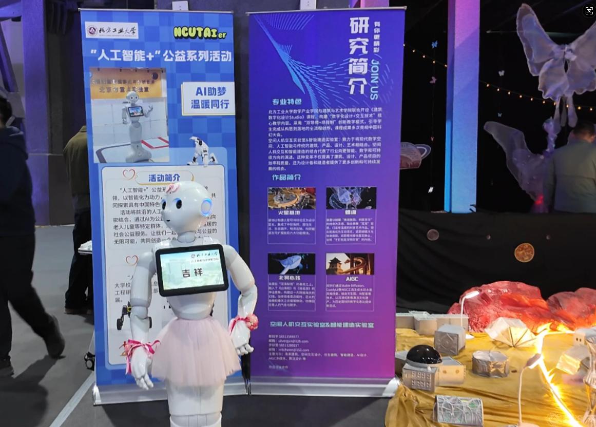 智能学院带来的两款具身智能机器人,成为现场兼具温度与科技感的亮点。深耕特殊儿童公益领域多年的 “吉祥”机器人,作为学校落地早、持续迭代的经典具身智能项目,将前沿人工智能技术与公益事业深度融合,走出了科技向善的创新路径;“霸王别姬”京剧机器人则以科技赋能传统文化,让经典艺术在科幻舞台上焕发新彩。