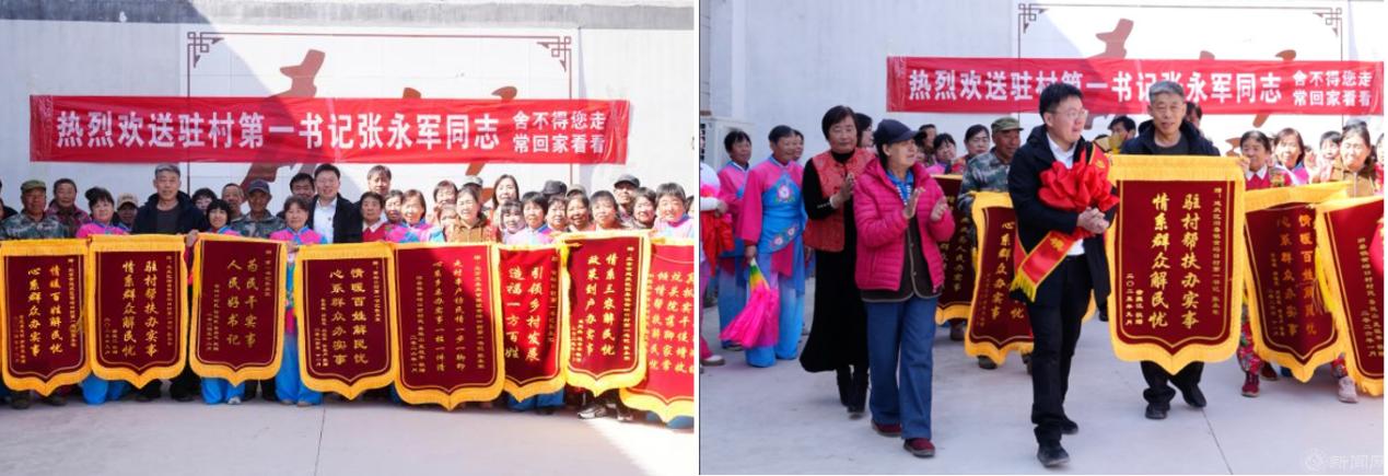 近日,beat365官网派驻延庆区旧县镇黄峪口村的第一书记张永军圆满完成两年帮扶工作,用实实在在的工作成效,交出了一份服务农业农村现代化的“民心答卷”。离村当天,村民们纷纷自发前来相送,眼中满是不舍与感激,队伍从村委会一直排到村口。“张书记,您可要常回来看看!”程大娘攥着驻村第一书记张永军的手哽咽道。