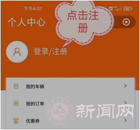 2.在出现的界面点击“注册”,“授权手机号登录”,注册的账号为办理车证时留存的手机号码;