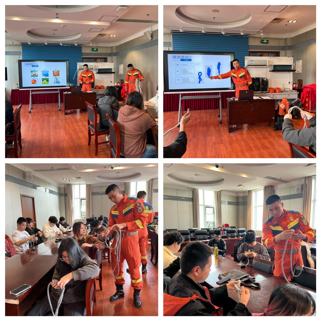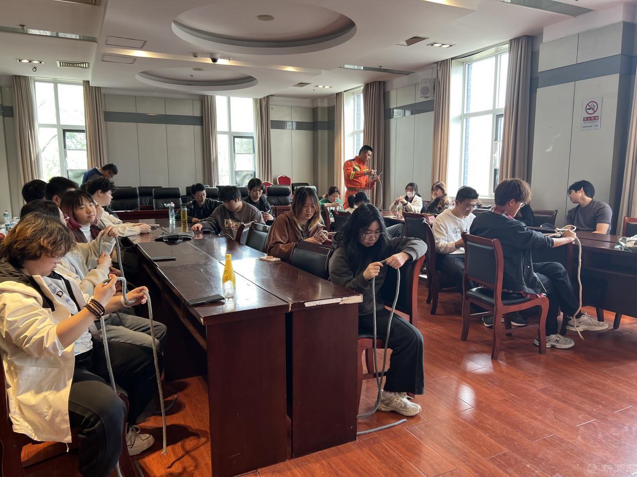 课上,教员从八字结、桶结、布林结,到双渔夫结、蝴蝶结、抓结、卷结,逐一讲解每种绳结的相对强度、适用场景及操作注意事项。“别小看一个绳结,登山、救援、固定装备,甚至火灾逃生,打错了就是生死之差。”胡仪教员一边演示,一边纠正同学们的手法。
