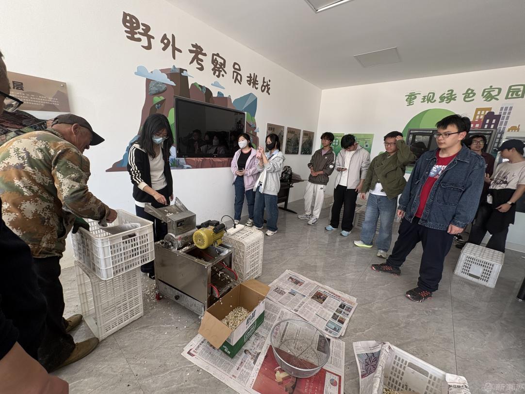 理论讲解结束后,同学们分成两组投入到实践操作中。第一组采花取粉,大家小心翼翼地采集含苞待放的梨花。摘取后的花朵集中放置,并用特制机器将花药与花瓣分离,放在温度稳定在20-28℃的干燥室内自然晾干,直到花药壳变黑开裂,露出黄色粉末,便制得花粉。第二组将已经制好的花粉借助授粉器顺风点授到盛开的花朵柱头上。起初,不少同学手法生疏,花粉洒落、授粉位置不准等问题频出,但在老师的耐心纠正下,大家逐渐掌握了技巧,动作也愈发熟练。