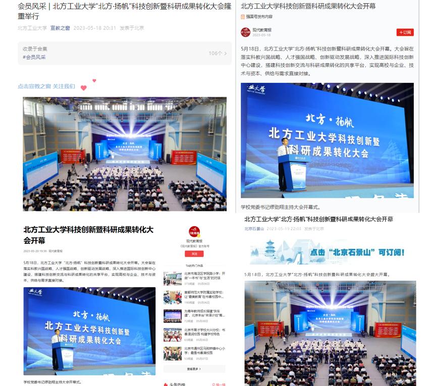 人民网、新华网、环球网、中国科普网、学习强国、现代教育报、宣教之窗、石景山融媒体集中报道了“北方·扬帆”大会开幕式,并全景展示了大会召开的情况。