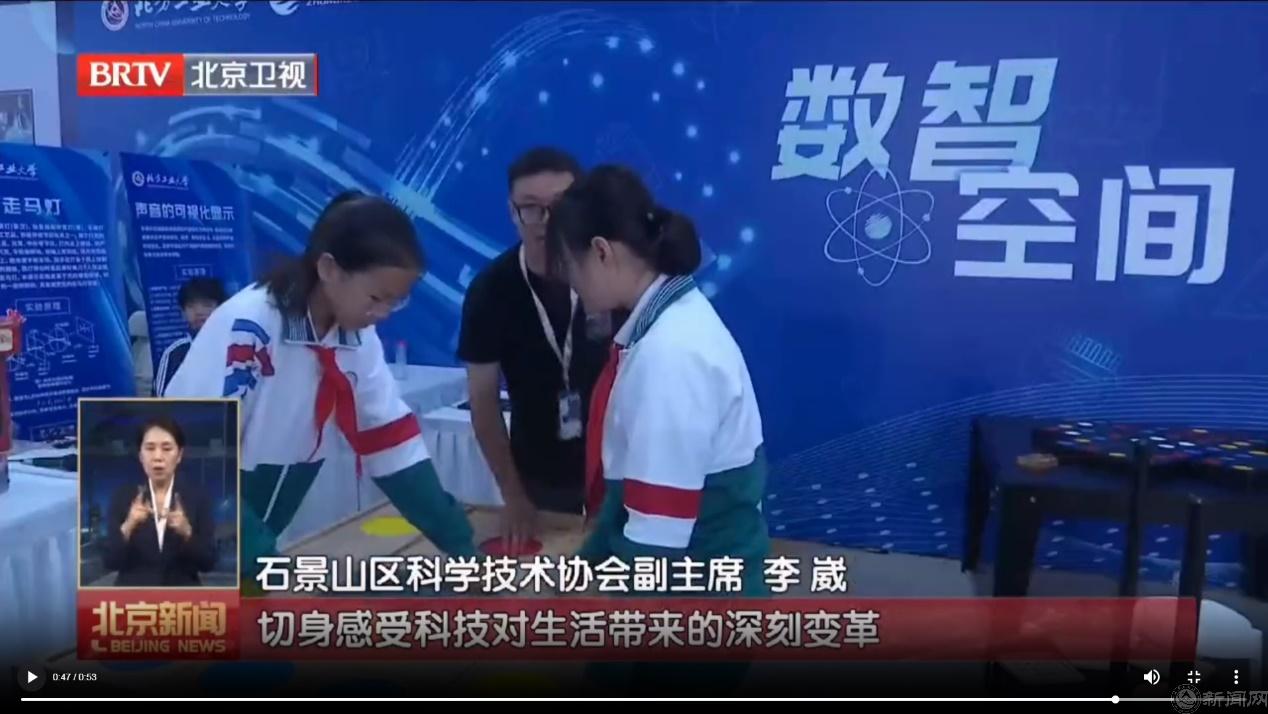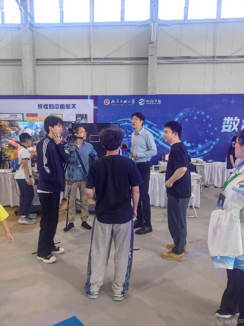 活动中,北京电视台采访了在现场负责讲解的两名理学院学生。统21-2班娄佳豪谈到:2035年我应该已经33岁了,我想那时候我可能会成为一名老师,最好是小学的科学老师,教孩子们一些科学小知识,培养他们的科学素养,让他们对这些能感兴趣。信22-1班田茂利谈到:我非常喜欢我现在的专业信息与计算科学,既有扎实的数学基础,也有数据和人工智能的专业方向,我将来一定用我所学的知识致力于祖国的科技发展,我也很有兴趣做科普工作,因为对青少年科技培养非常有意义。