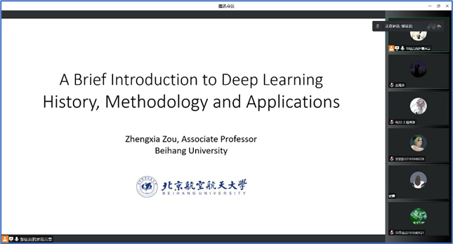 为活跃学术氛围,拓展专业知识,激发学生对科技探索的兴趣,信息学院特邀北京航空航天大学邹征夏博士,于10月11日和18日开展了两期主题为“深度学习——历史、方法论和应用”的线上全英文学术讲座。本次讲座共有130余名本科生、研究生和留学生参加。讲座由信息学院副院长鲁远耀主持。