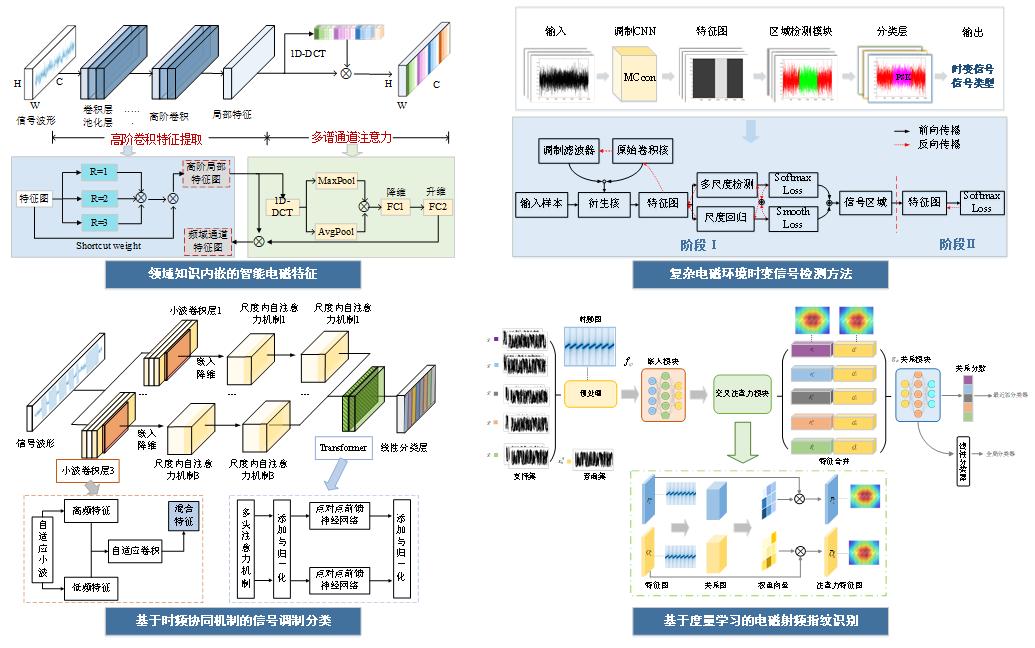 在基础研究方面,他围绕领域知识内嵌的智能电磁特征提取开展系统研究,将频谱分析、高阶信息、异构融合等思想引入深度学习框架,不断提升复杂电磁信号表征的智能性、鲁棒性与可解释性,为复杂环境中的电磁智能感知提供了有价值的理论支撑。