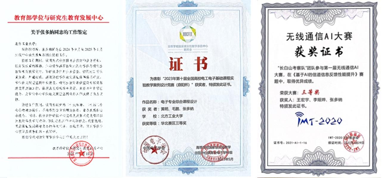 在教学成果和人才培养方面,张多纳也取得了较好得成绩。2023年他获得第十届全国高校电工电子基础课程实验教学案例设计竞赛华北赛区三等奖,获评校级优秀毕业设计指导教师。作为研究生导师,他始终坚持以高标准要求自己,以高质量教学引领学生成长。
