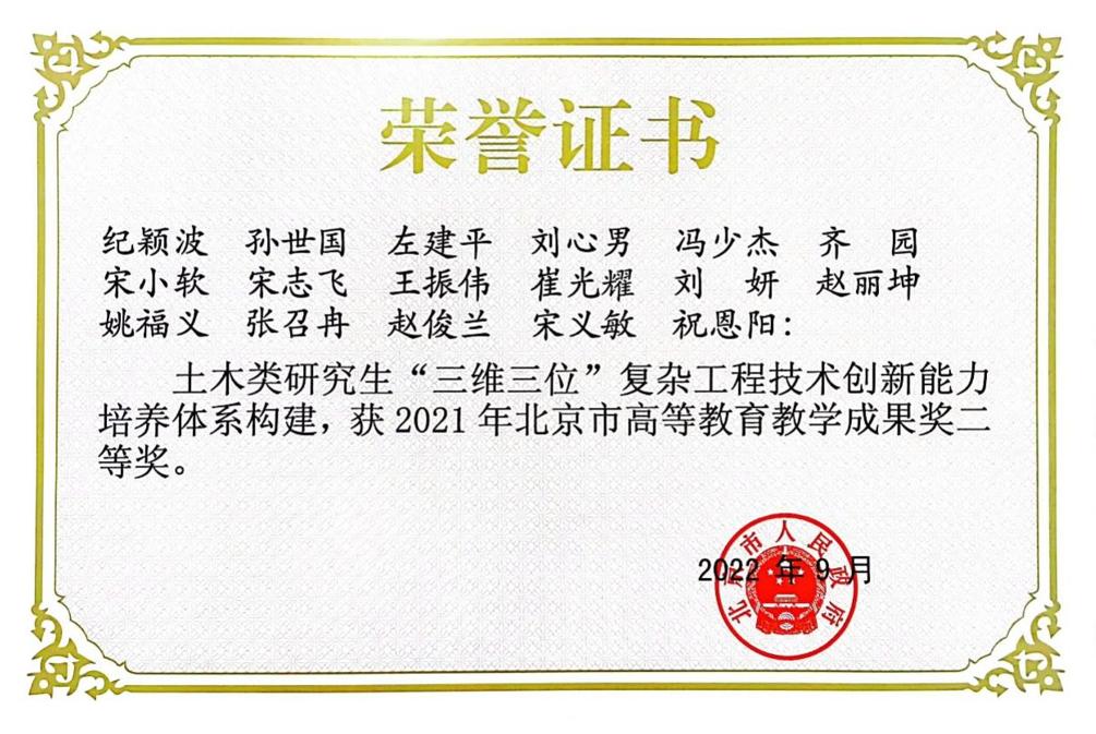 教育教学研究及创新取得新突破。获教育部新工科研究与实践项目、产学合作协同育人项目5项,北京高教学会重点教改项目2项、面上项目2项,北京市教育教学成果奖2项,全国高校矿业类人才培养教育教学成果二等奖1项;获全国青年教师专业教学比赛一等奖2项、北京市教学创新及教学基本功大赛三等奖2项,校级教学创新及教学基本功大赛一等奖3项、二等奖6项。