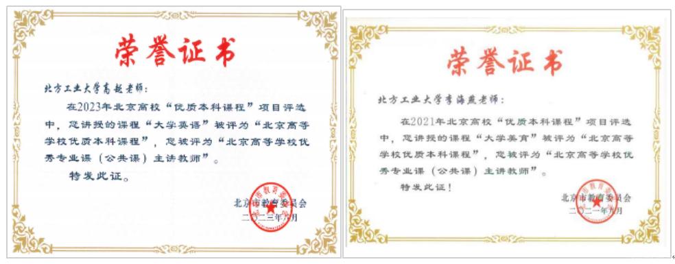 教师教学能力持续提升。教师在高校教师教学创新大赛、外语课程思政教学案例大赛等赛事中获奖4项,多个团队及个人在市级教改课题、教学示范案例、优质本科教案评选中屡获佳绩。