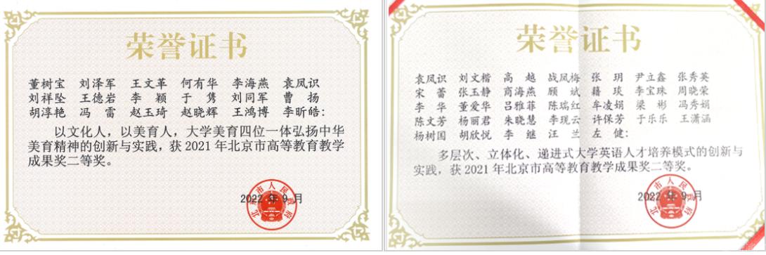 国家级“金课”实现突破。《大学美育》获评国家级一流本科课程;2门课程被评为北京市优质本科课程。