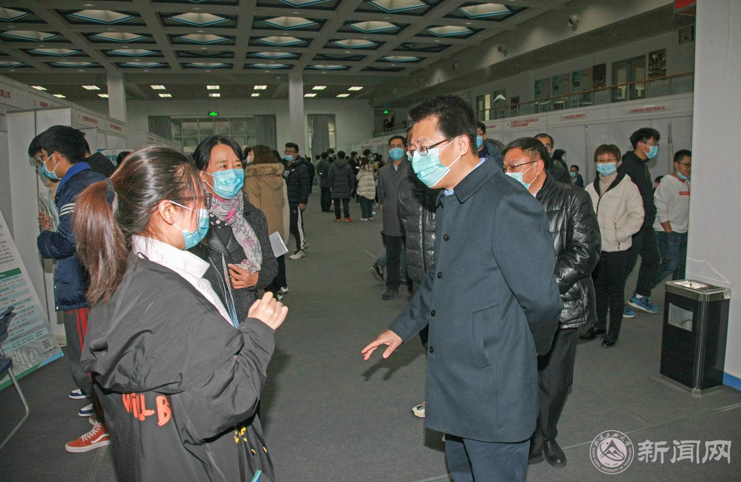 11月25日下午,党委书记缪劲翔到体育馆一层“校园双选会”现场,调研指导毕业生就业工作。党委副书记田红芳陪同参加了调研。