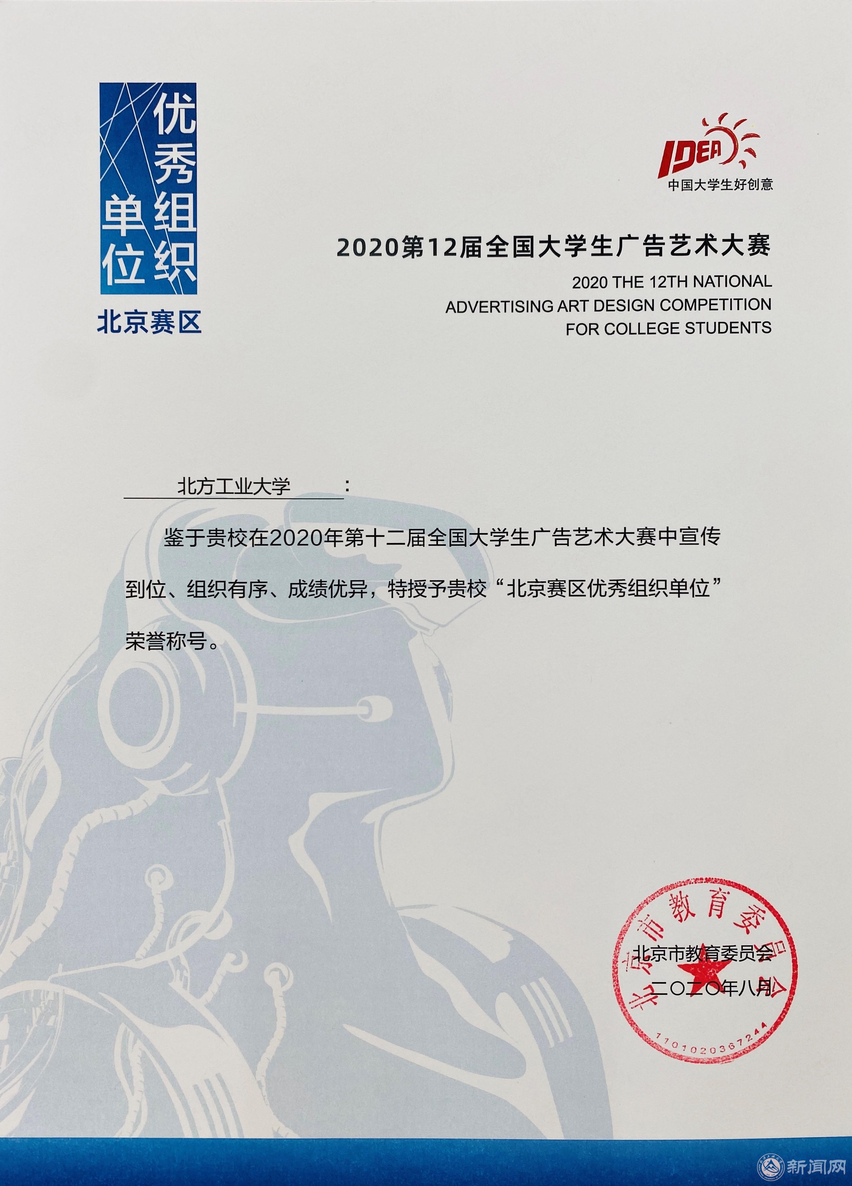 近日,第12届全国大学生广告艺术大赛结果揭晓。beat365官网广告学专业和设计学专业学生在北京赛区共获奖65项,包括二等奖6项、三等奖6项、优秀奖52项以及优秀组织单位奖。在全国赛区获得全国二等奖1项、全国优秀奖4项、广告19-2郭健伟同学的《守住门,在家也是战斗!》短视频获微博赛全国二等奖。
