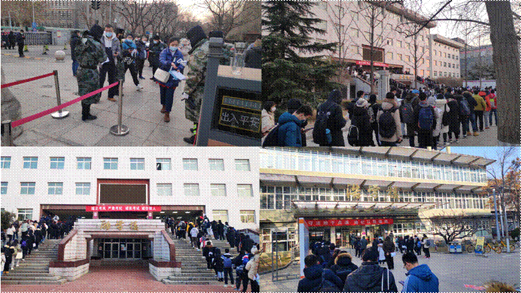 考试当天,考生经核验核酸检测等证明合格后进入考点,在考区门口排队,再次接受身份查验、体温检测,平稳有序入场,考场秩序井然。学校还对考生进的就餐及午间休息地点等进行了细致安排,为考生解除后顾之忧,保证考试顺利进行。